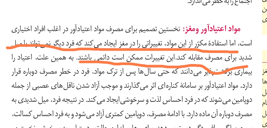 سلام من پاسخ سوالی که میگفت چرا اعتیاد بیماری برگشت پذیر است رو درست متوجه نشدم ایا این پاسخ درست هست که بنویسیم چون تغیراتی که روی مغز ایجاد میکنه ممکن است دائمی باشد ؟