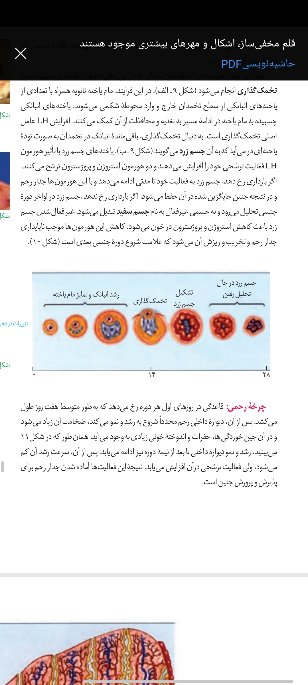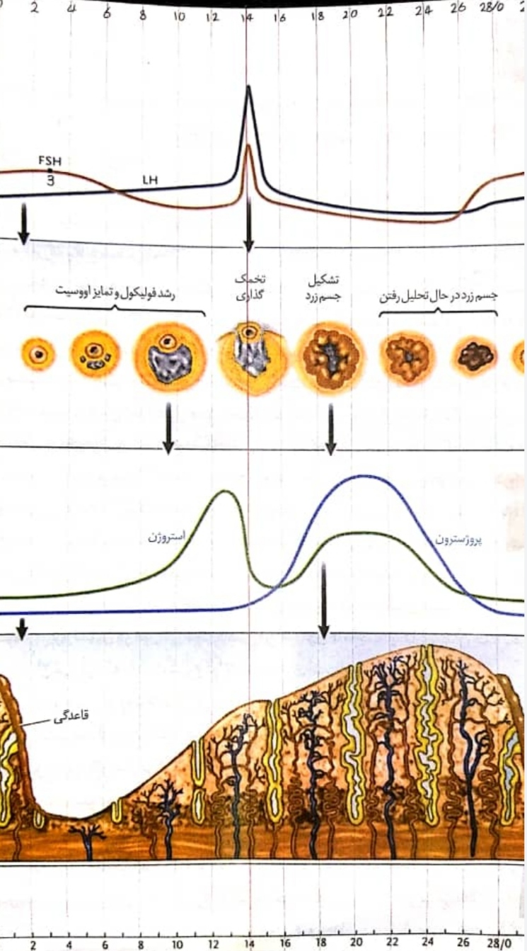 سلام با اون اتفاق همزمانه و همینطور با پروژسترون چون همینطور که تو شکل مشخصه، بعدشم که این دو تا هورمون کم میشن، دیواره شروع به ریزش میکنه