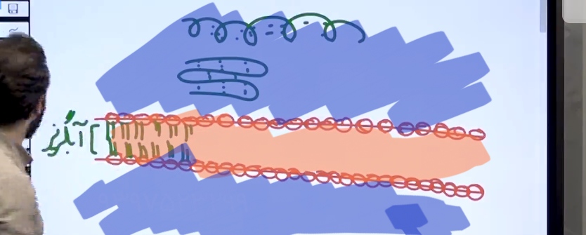 ببین اگر اون دو لایه غشا باشه،فرض بر اینه که فضای بین دو غشا،طرف آبگریز فسفولیپید ها قرار میگیره (ماژیک نارنجی زدم) اما فضای بیرونی غشا(چه در سمت داخل سلول و چه خارج سلول) رو آبدوست در نظر میگیریم(که با رنگ آبی مشخص کردم) چون فرض بر اینه که غشا از اطراف،قراره در معرض آب و مایعات قرار بگیره 🌷