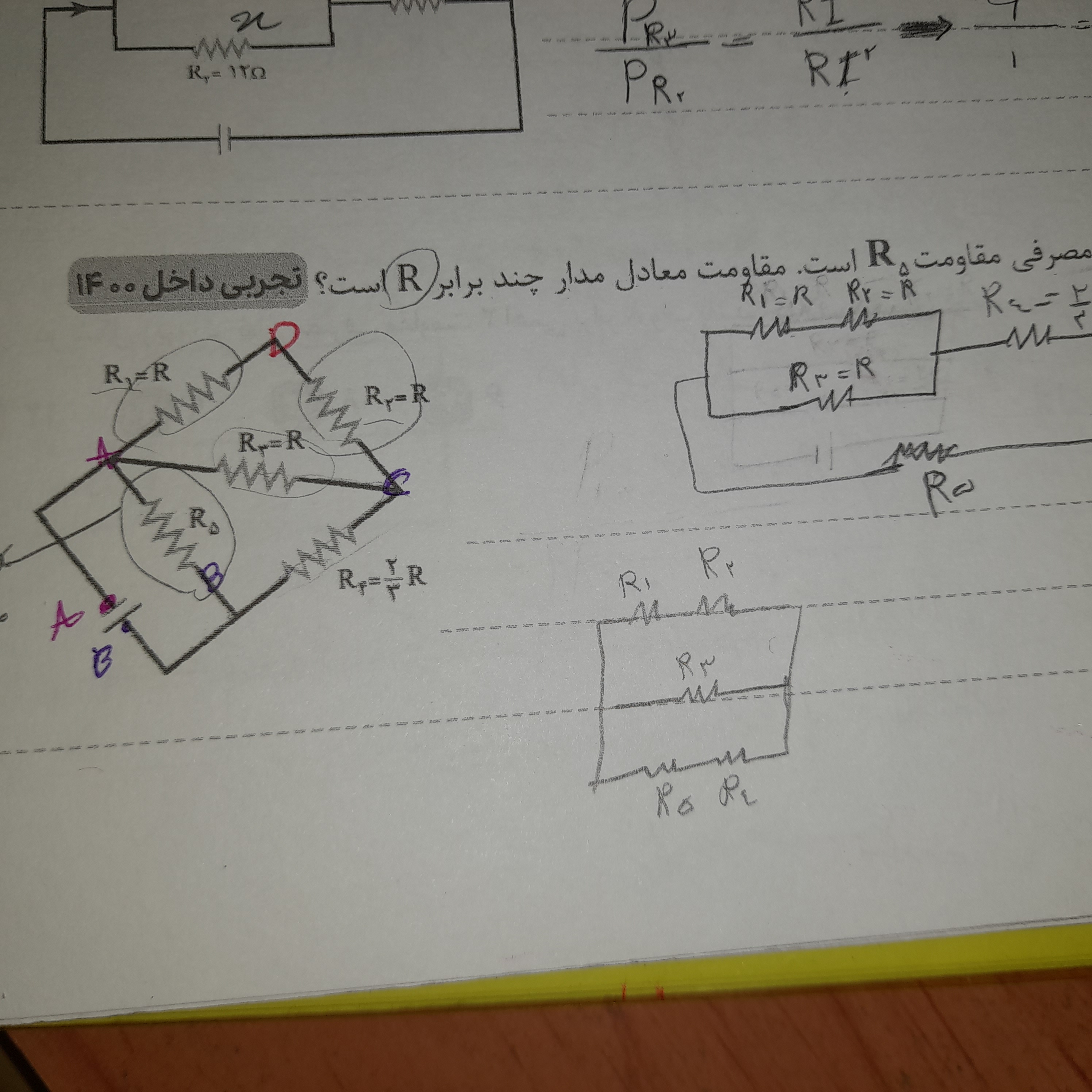 اتفاقا ۴ با ۵ موازی هست برای اینکه بهتر متوجه بشی اول ۱و ۲ رو معادل بگیر بعد با ۳ معادل بگیر حالا متوالی میشه با ۴ معادل اون با ۵ موازی میشه