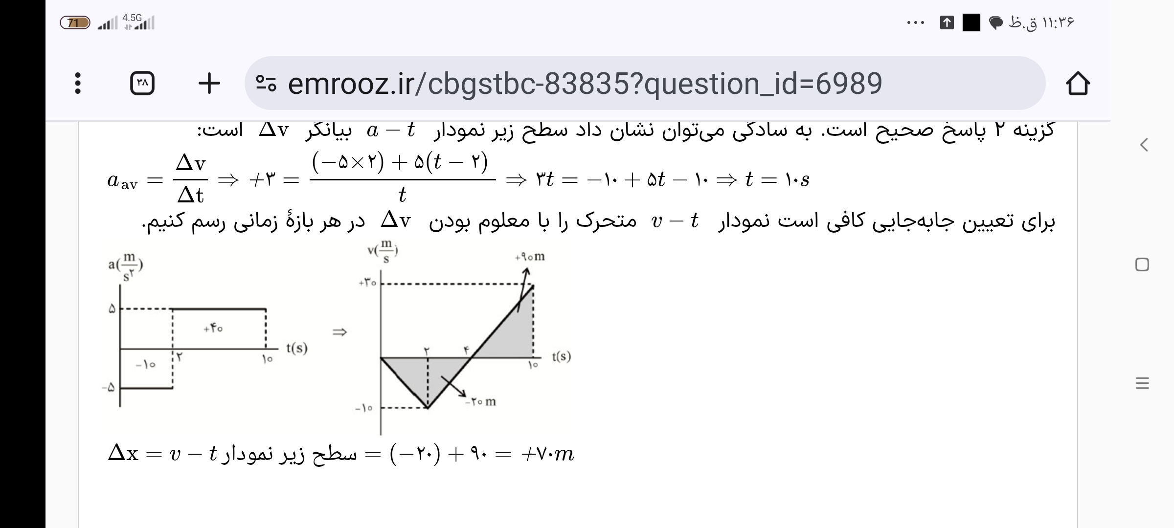 سلام من مثال اول رو از مساحت سطح زیر نمودار برای به دست آوردن سرعت متوسط استفاده کردن ولی جواب سی و شیش به دست میاد ولی وقتی استاد حل میکرد با نمودار طلایی بیست و هشت به دست آورد چرا اینجوریه