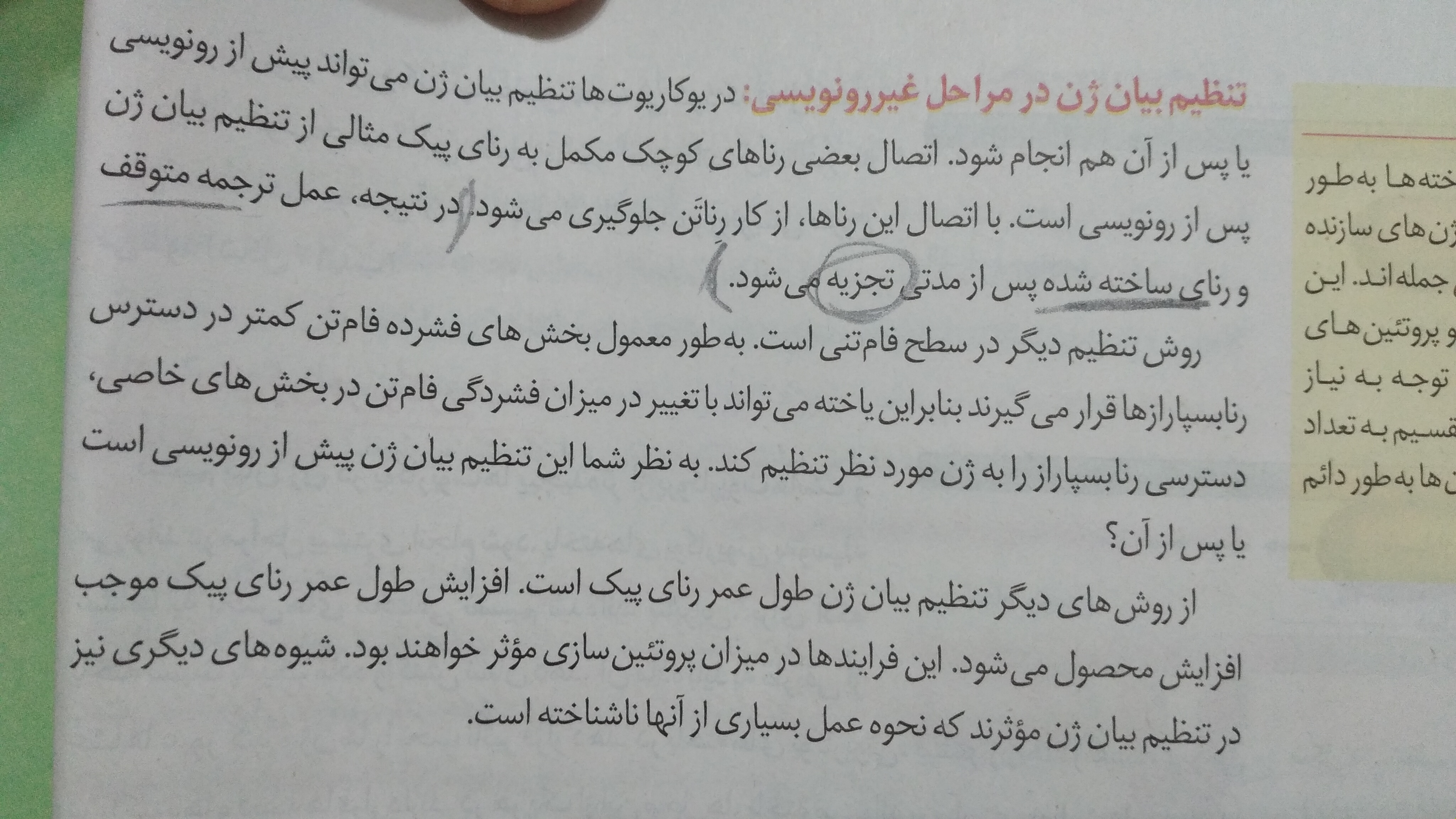 ثانیه ۴۰! سلام و خسته نباشید یه سوال ، میگم تنظیم بیان ژن نمی تونه قبل از رونویسی صورت بگیره!؟