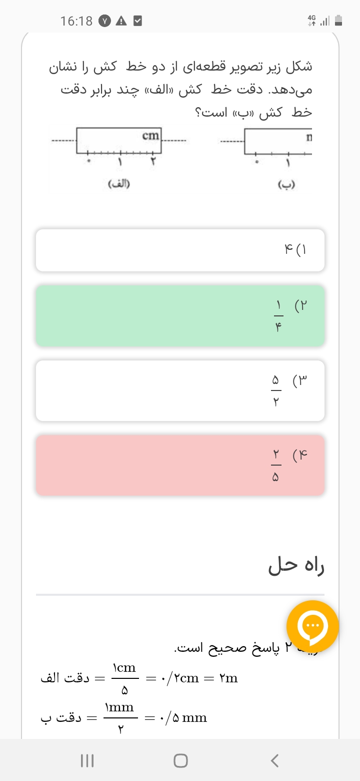 یه سوال مگه هرچه ریزتر بسنجد دقیق تر اندازه گیری نمی کنه مثلا بین ۰/۱و۰/۰۰۱ کدام یک بیشتر ۰/۰۰۱ پس چرا این جا شده جواب گزینه ۴