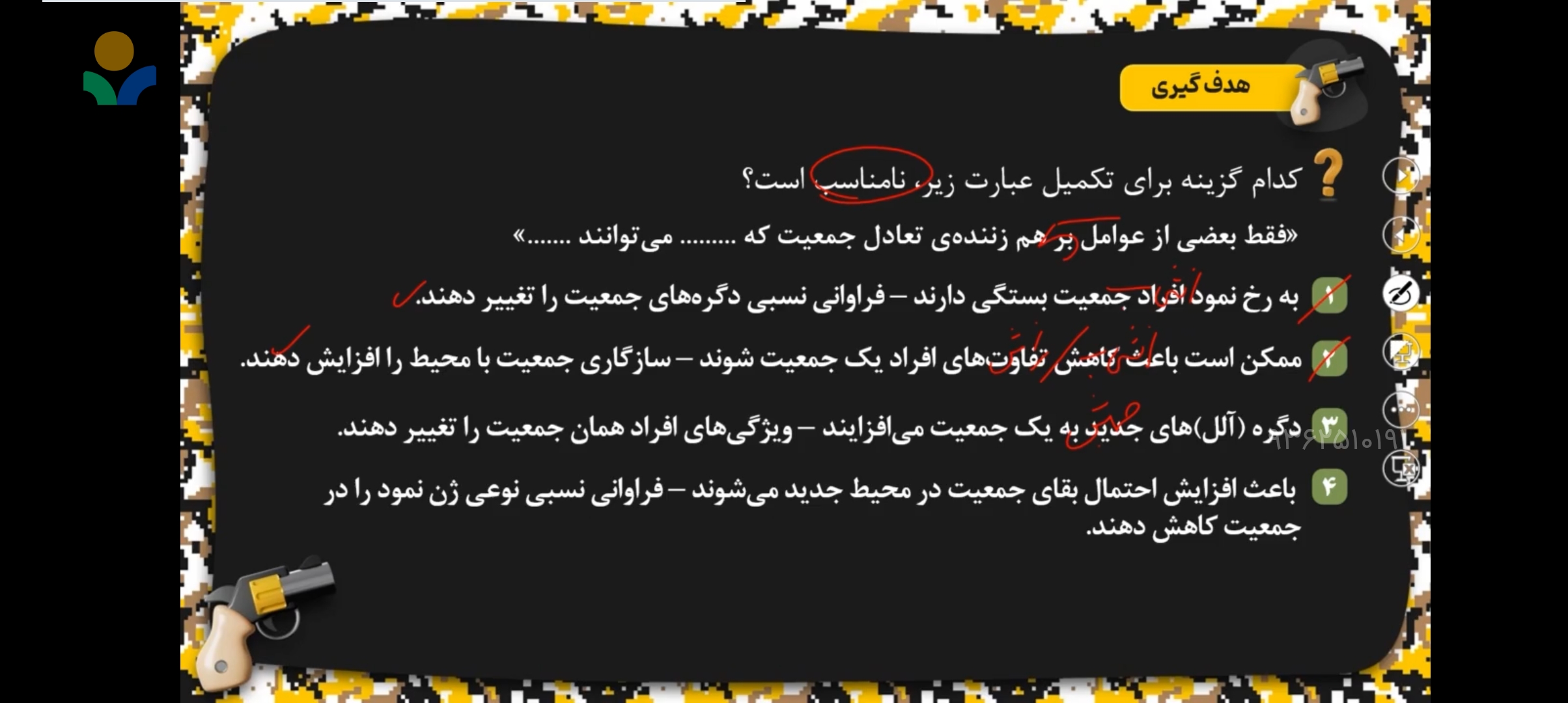 @فاطمه جعفرزاده گزینه ۴ هم غلطه اگر کراس باعث بشه الل متفاوتی جابجا نشه خب باعث ایجاد صفات جدید در جاندار نمیشه