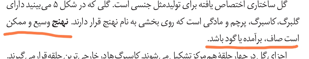 کتاب درسی اشاره ای نکرده که نهنج جزو اجزای گل هست یا نه و یمقدار ابهام داره ولی اگر بخشی از گل در نظر بگیریمش،منطقی تره