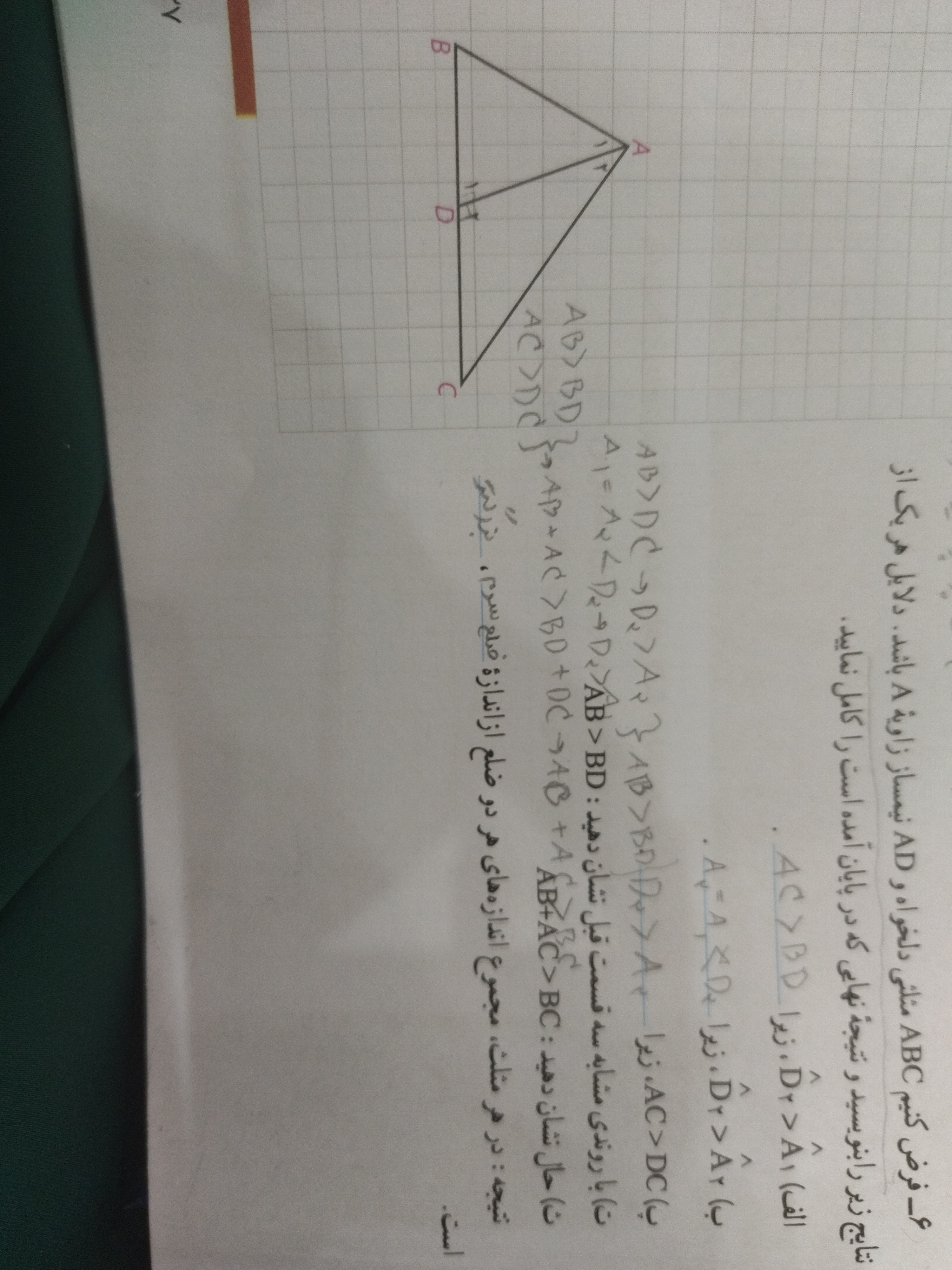 یکی از اضلاع مثلثه (ضلع مقابل به زاویه A در نظرش بگیریدش شما )