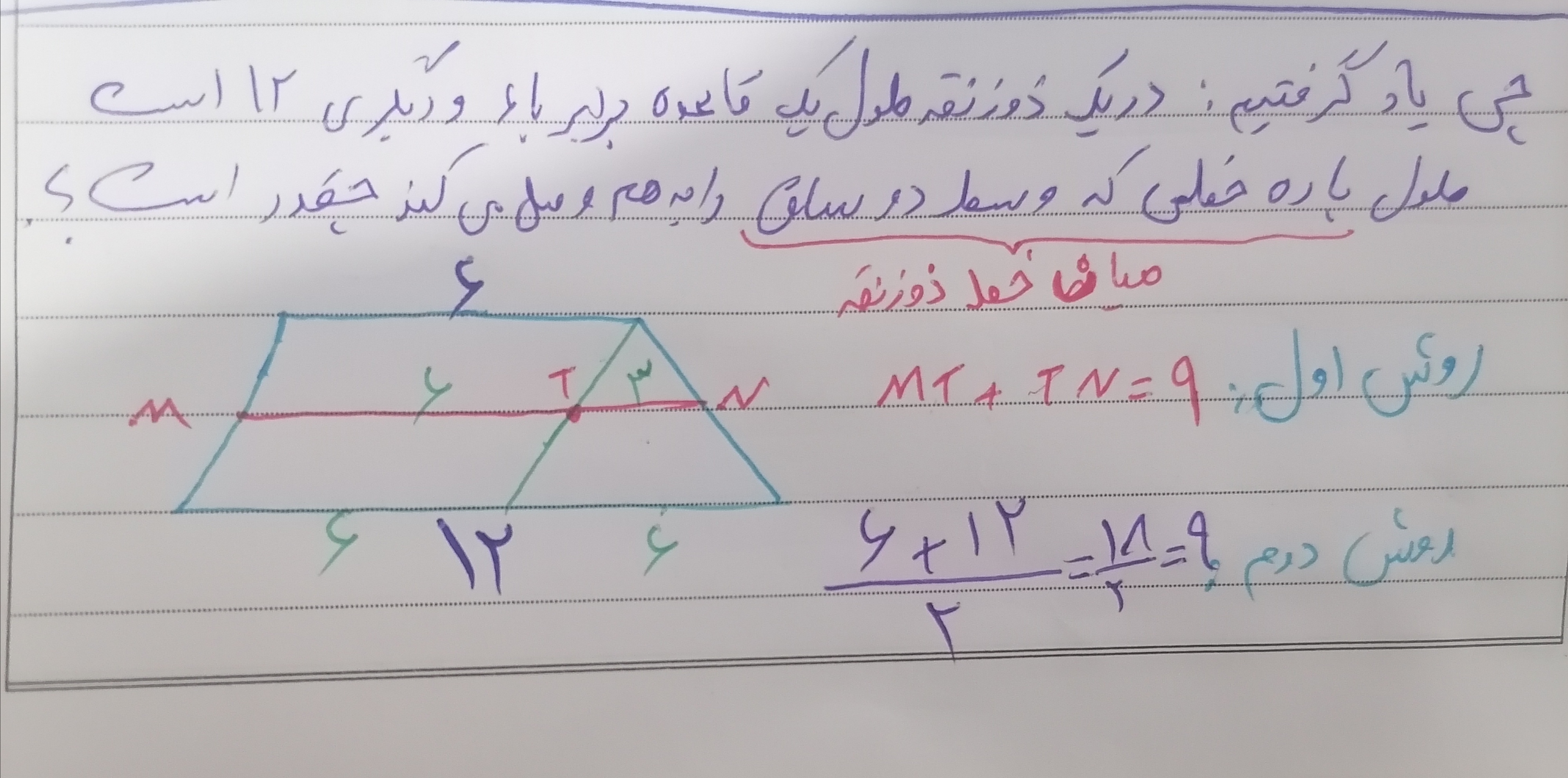 برای حل چی یاد گرفتیم؟طبق توضیح استاد در قسمت میان خط ذوزنقه و همچنین مثال حل کرده و فرمول داده شده به جواب میرسیم