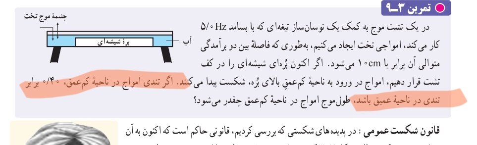 من قضیه آب کم عمق و عمیق رو خداییش متوجه نشدم !!! از یک محیط به یک محیط دیگه مثل آب به هوا . و برعکسش رو متوجه شدم . اما کم عمق و عمیق لطفا برام توضیح بدید ارتباطش با غلیظ و رقیق بودن به چه شکل است ؟ آیا اصلا ربط داره یا نه ؟ اصلا توی یک محیط چه اتفاقی میفته که موج میشکنه ؟