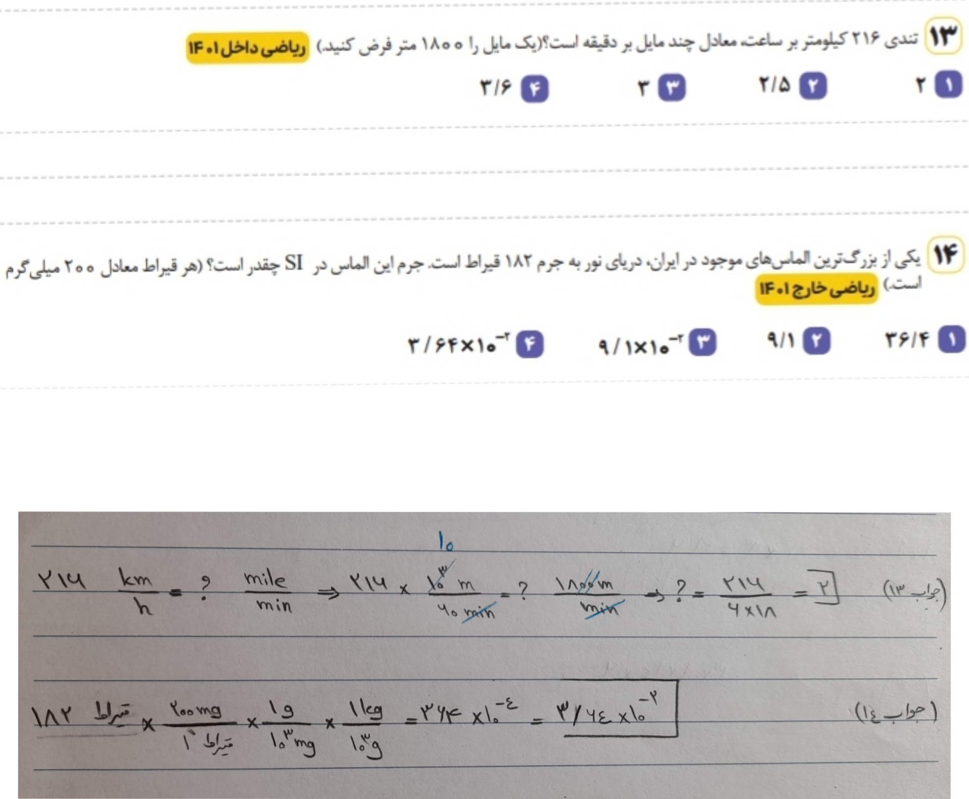 چرا توی این سوال تو گزینه 3 . 14 ها رو باهم ساده نمیکنیم ؟ لطفا هر کی میدونه جواب بده