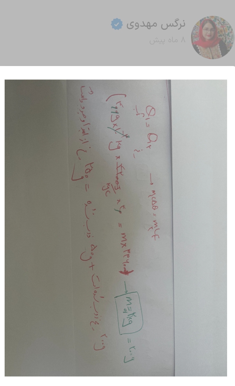 ببخشید چرا چی یادگرفتی با روشی که استاد گفتند که اگر روی سوال جرم یخ ذوب شده یا ... خواستند هر مقدار اب داغ 80 درجه هم جرم خود یخ صفر در جه را به طور کامل در خود ذوب می شود چرا با این روش جواب درست نمیاد؟