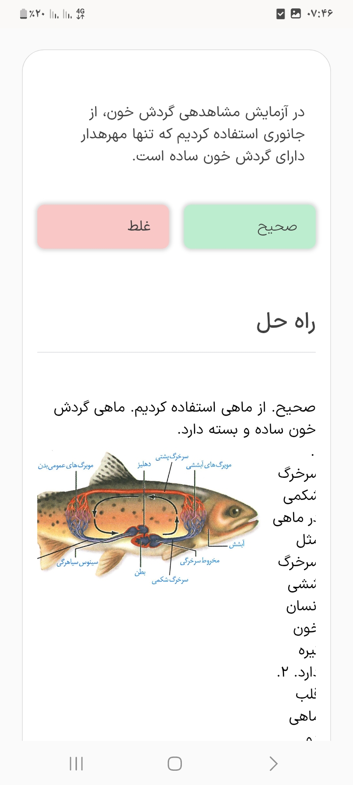 بله دوزیست نابالغ هم گردش خون ساده داره ولی توی این آزمایش فقط از ماهی استفاده کردیم نه از نوزاد دوزیست