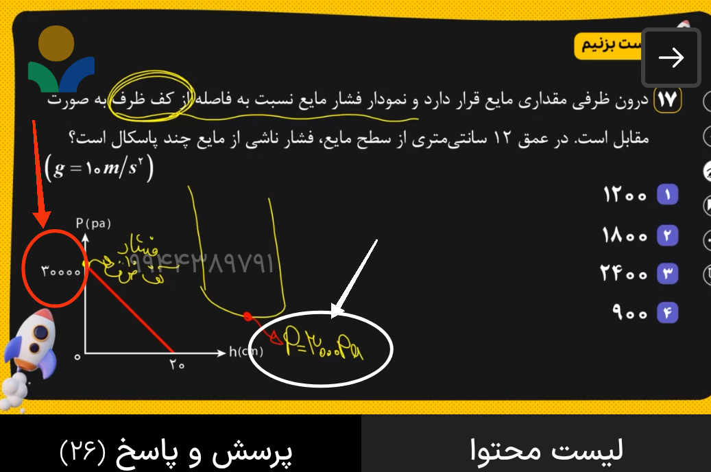 دردود بر شما چرا استاد فشار بر کف ظرف رو 3000 گرفتند مگه نمودار کنارش ننوشته 300000