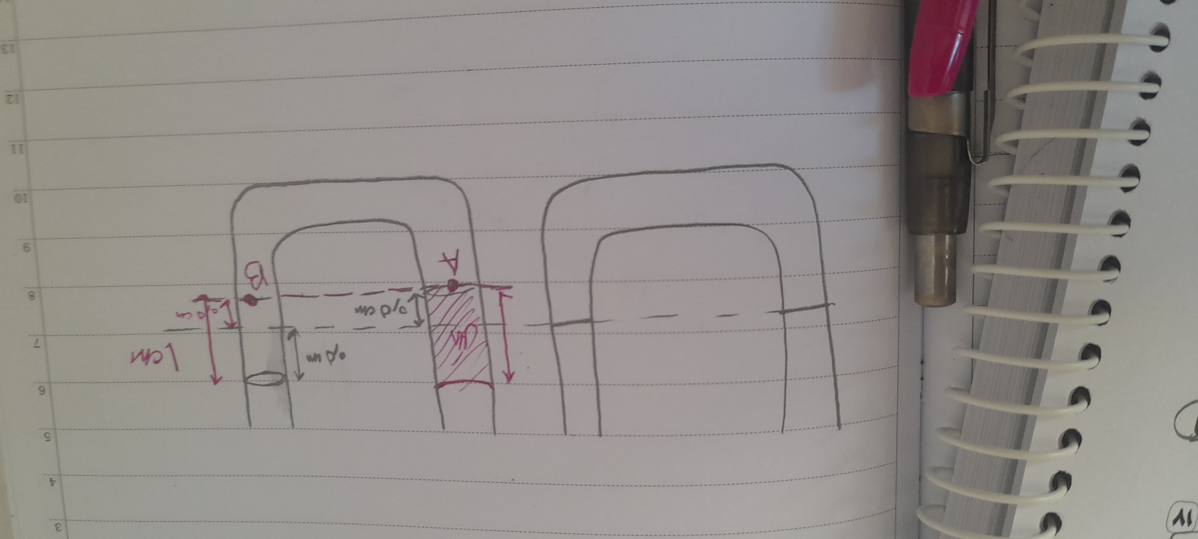 اختلاف ارتفاعی که ایجاد میشه برای آ بیشتره منظور اینه که پیستون آ از همه پایین تر میاد و به همین دلیل ارتفاع ستون مایع (خواسته سوال) برای آ از همش کمتر میشه