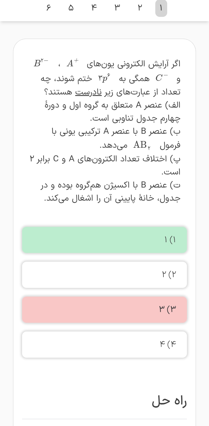 @زینب فرزین زاده منگنز (ll) کربنات : MnCO3 منگنز دو باره مثبته میده به کربنات و کربنات دو بار منفیه میده به منگنز و این دو باهم ساده میشن تو سوال گفته نسبت انیون به کاتیون که 1 به 1 میشه 1 شما 2 تقسیم به 2 هم بگیری باز هم میشه 1