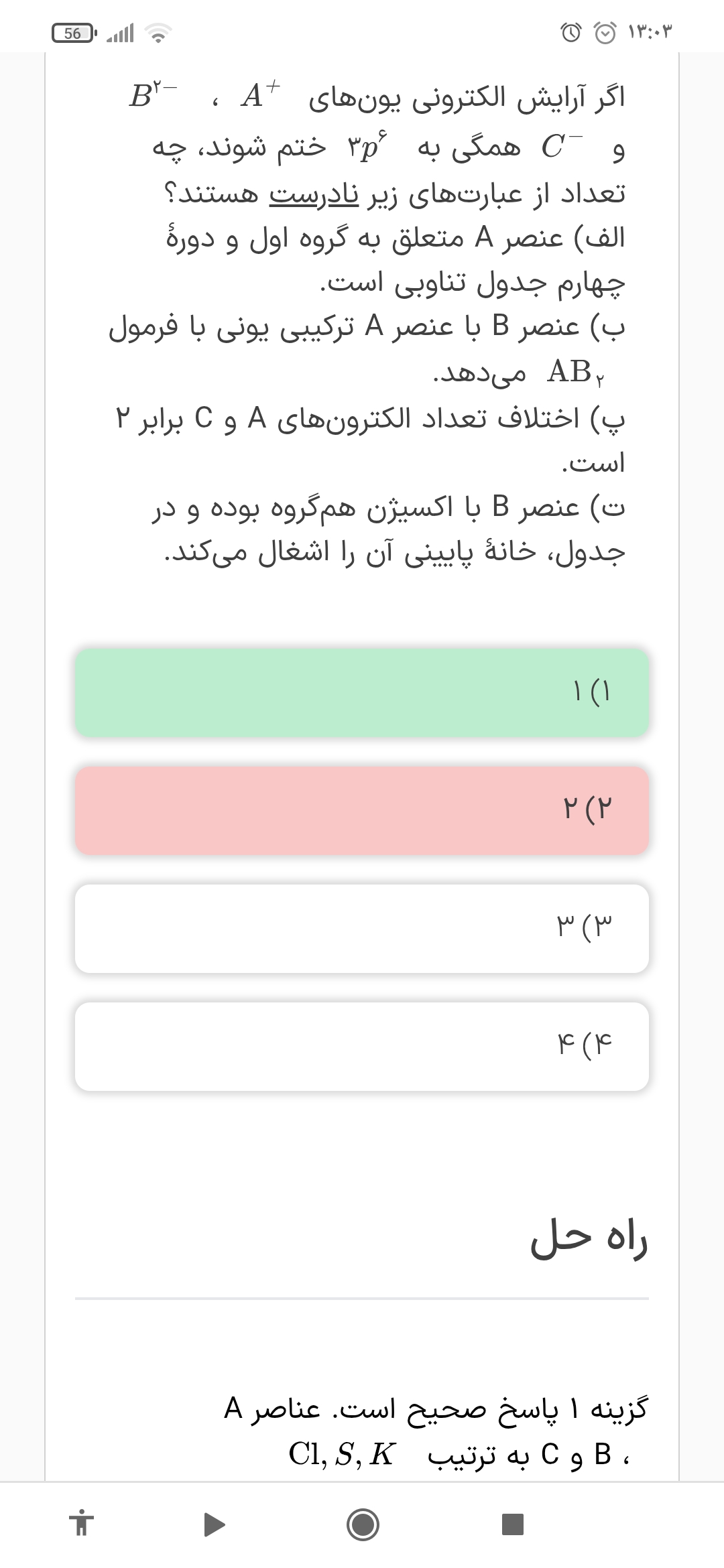 این سوال تو توضیحات گفته گزینه ۴ درسته بعد گزینه یک هم درست گرفته کدوم گزینه جوابه