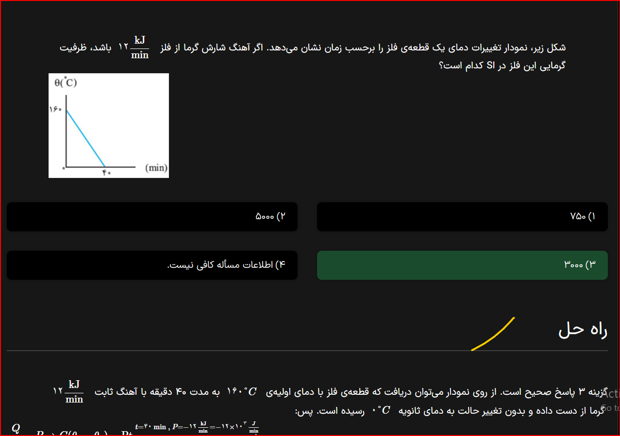 سلام در واقع گرما نقش y رو داره و تغییرات دما نقش x و در رابطه Q=C∆T وقتی ب جای گرما و تغییرات دما بزارین x و y پس ظرفیت گرمایی میشه a یا شیب خط