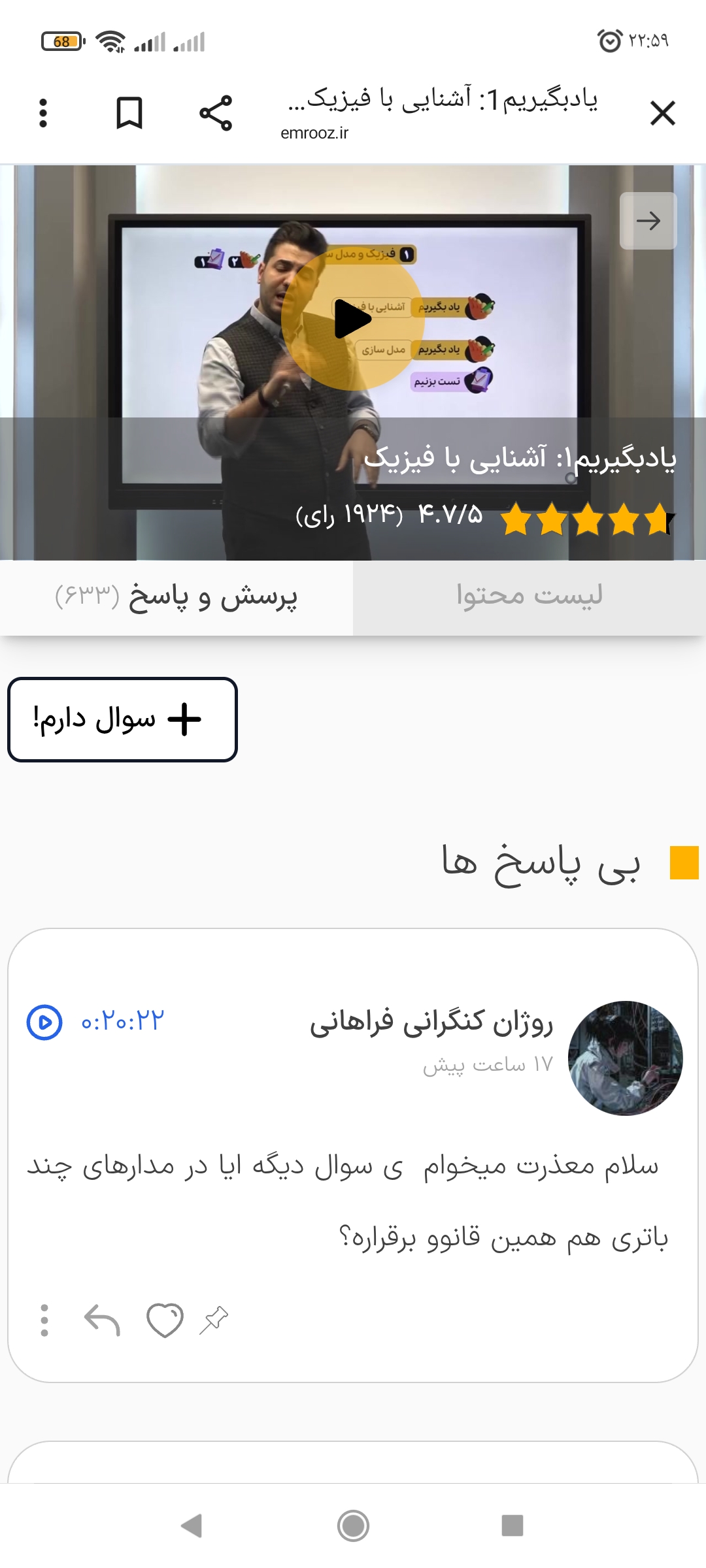 سلام سوالی که میپرسید مربوط به این ویدیو نیست اگر ایراد فنی وجود داره به پشتیبانی بگید