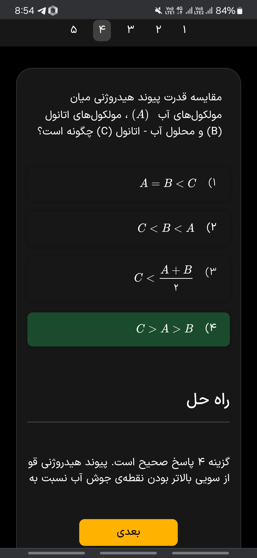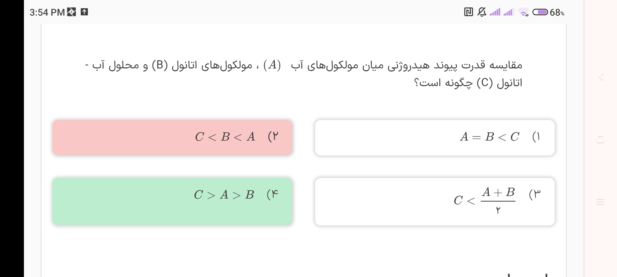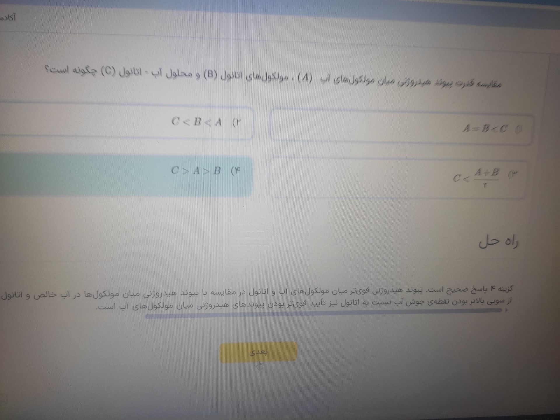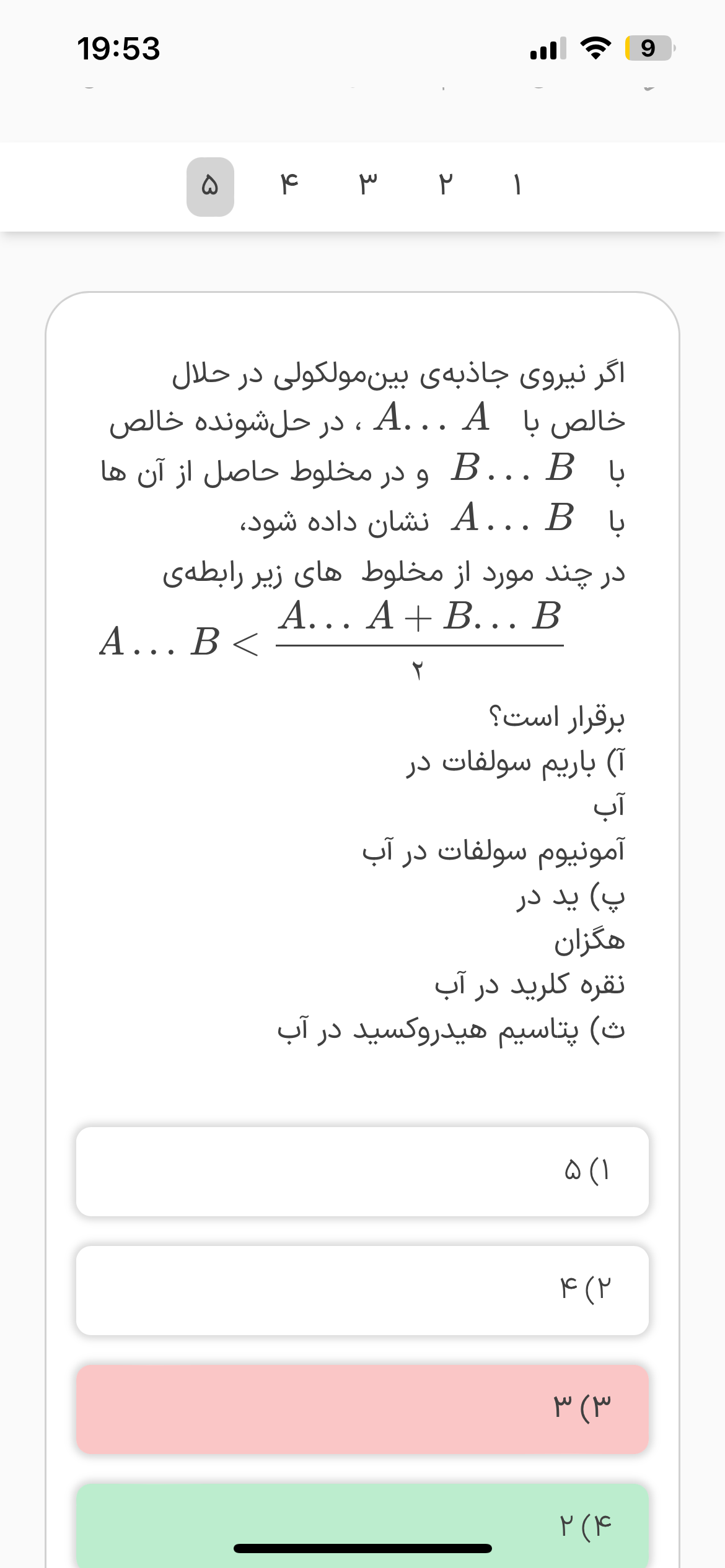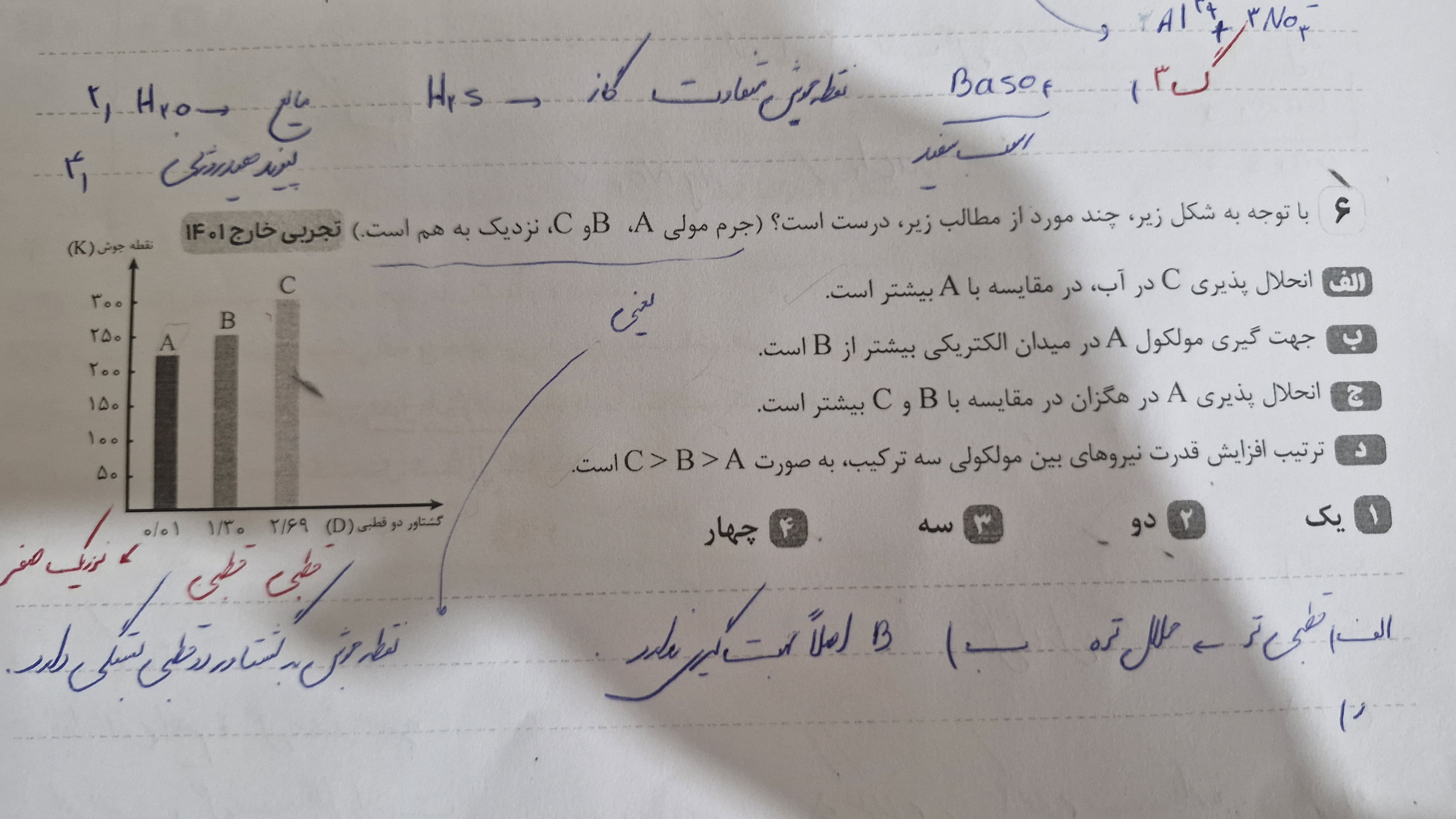 سلام جاذبه دو قطبی بین میانگین مولکول های آن که کوچکتر از محلول است چطور سوال میاد؟