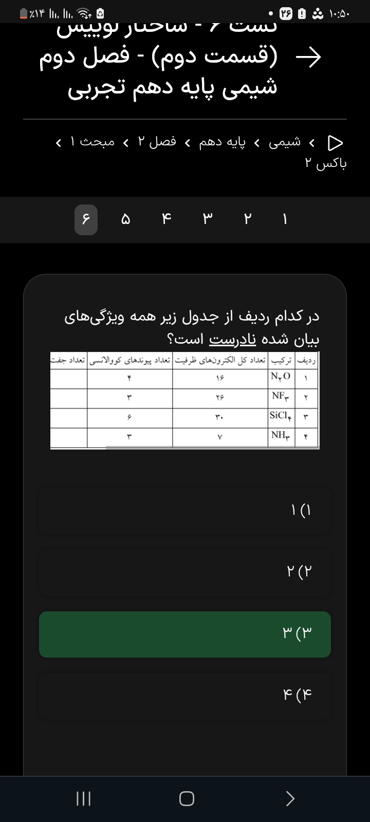 سلام . در بخش تمرین همین مبحث سوال ۶ ، NH که H دارای ژیروند ۳است الکترون ظرفیتش چقدره ؟۸؟یا ۷؟