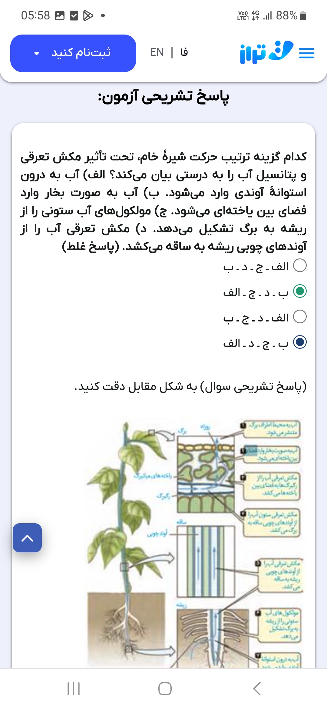 میشه لطفا گزینه سوم رو توضیح بدید یعنی فشار ریشه ای از طریق تعریق مشخص میشه ؟ یعنی چی متوجه نمیشم