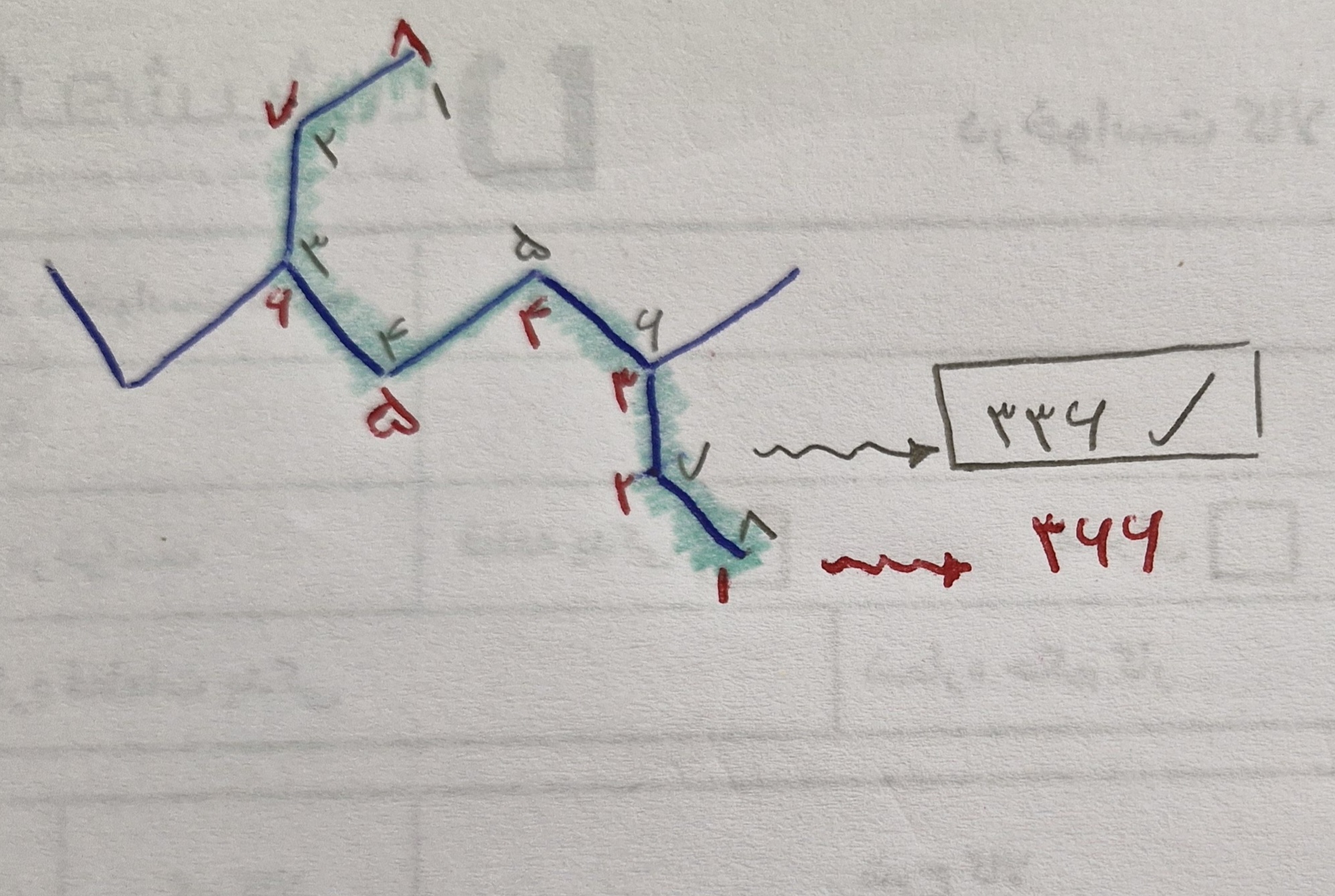 ترتیب اتیل و متیل رو یاد گرفتم که اگر از هردو طرف عددیکی بشه باید به این ترتیب توجه کنیم اما اینکه چجوری شماره گذاری مثلا جوابش میشه ۳۴ رو نفهمیدم میشه توضیح بدید