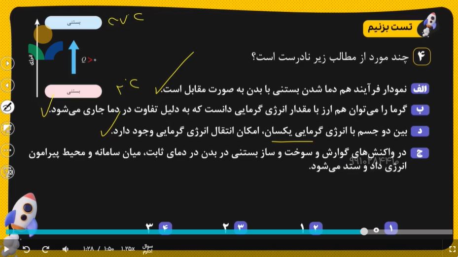 مگه گزینه ۲ هم درست نمیگه؟ استاد میگن گاز ناپایدارترع پس گرماش بیشتره و مایع گرماش کمتره چرا استاد گفتن غلطه؟