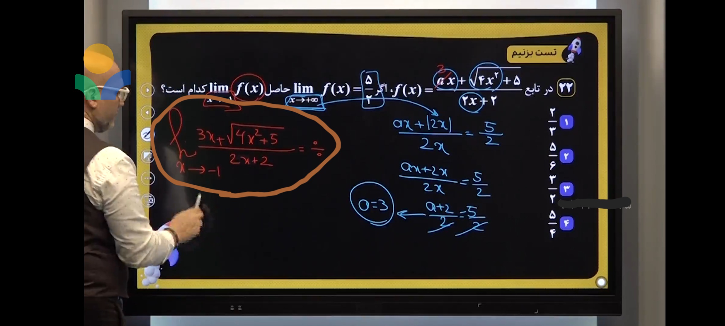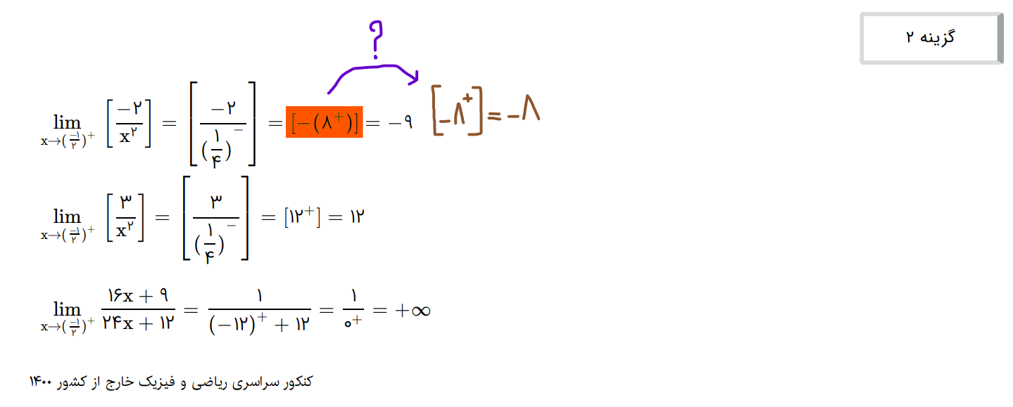 گزینه 2 رو راحت ترم میشه حل کرد . بزرگترین x صورت میشه x به توان سه دوم که توانش از x مخرج بزرگتره پس حاصلش میشه بینهایت
