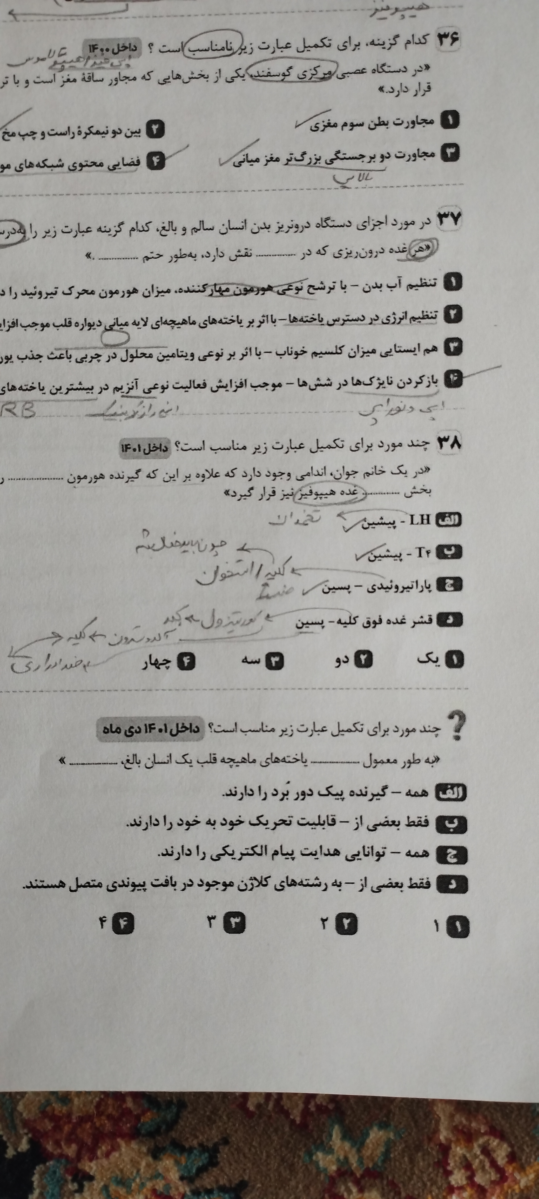 سلام خسته نباشید برای گزینه ی سه میتونیم هورمون های جنسی و هورمون رشد رو هم در نظر بگیریم؟( برای بخش اول گزینه)