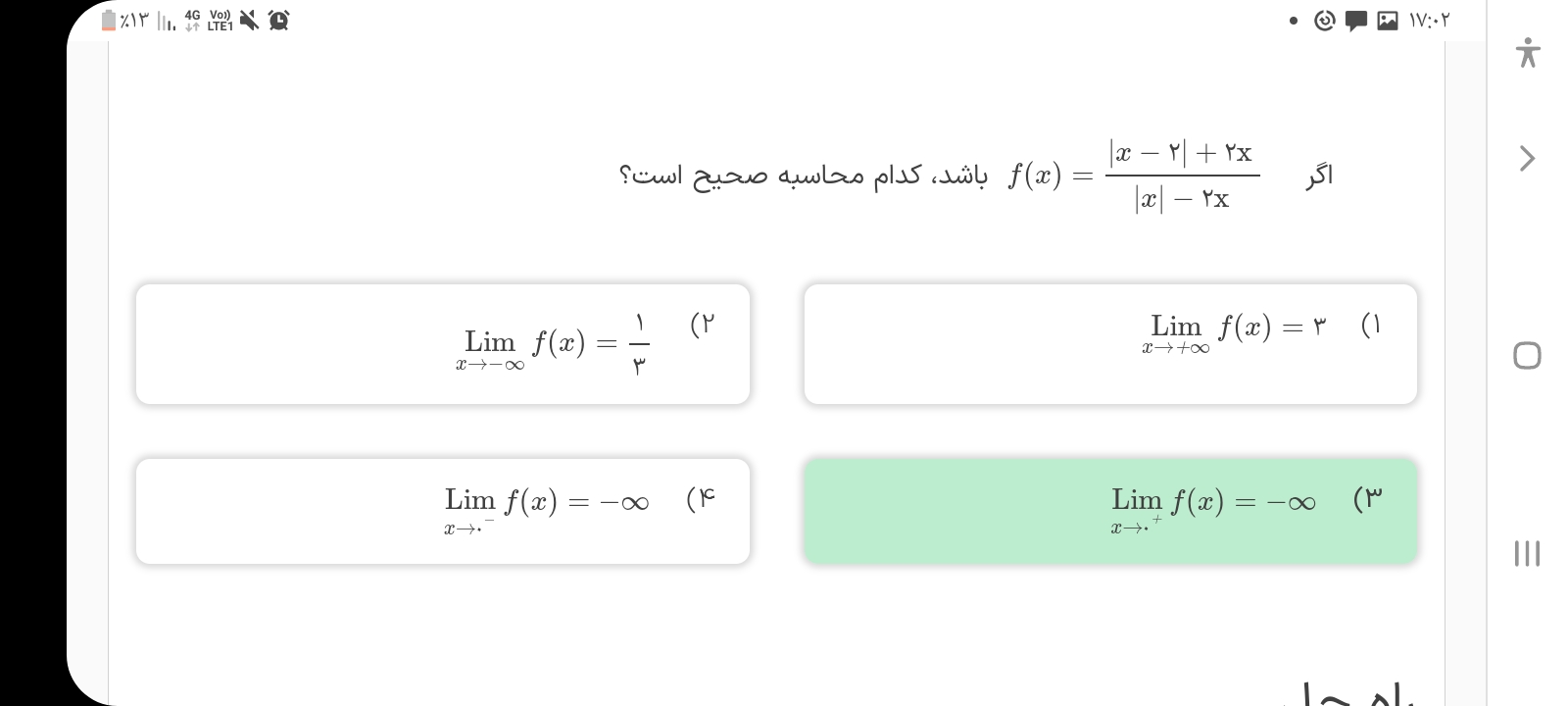 توی گزینه ۳ و۴ چون لیمیت بیرون براکت بود ازش صرف نظر کردیم درسته؟