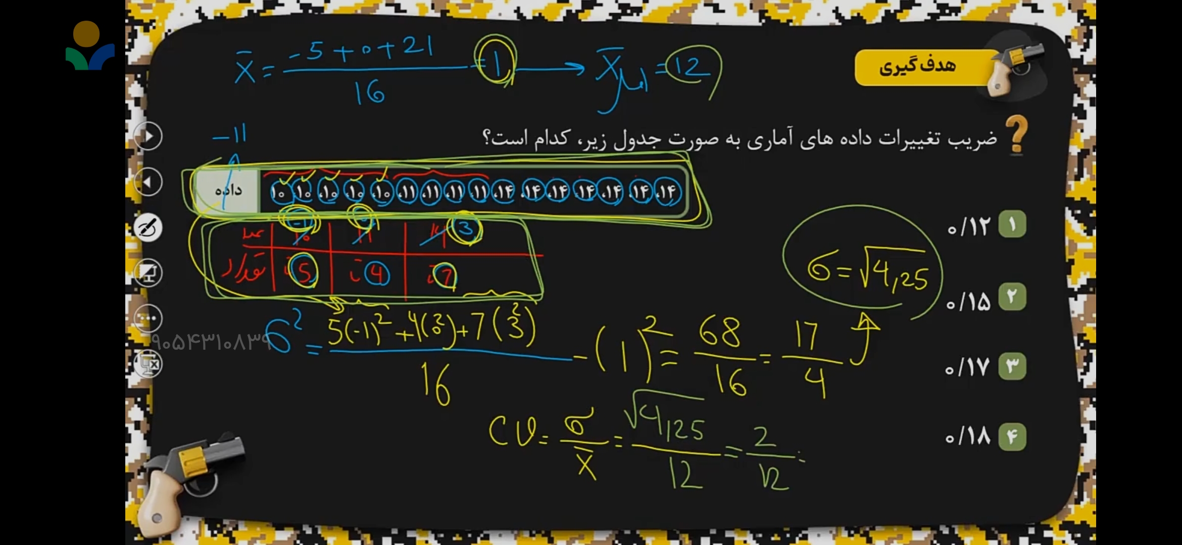سلام. یادشون رفته حتما. باید کم میکردن. در اونصورت میشد 52 به روی 16 یا 3/25. جذرش میشه حدودا 1/8. 1/8 تقسیم بر 12 میشه 0/15.