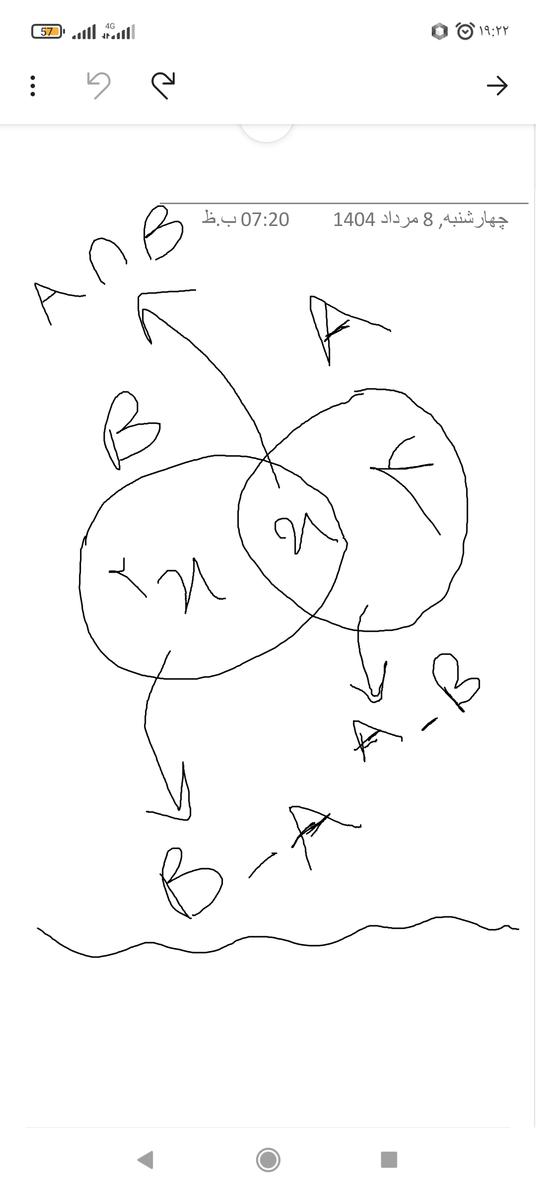 میتونی برای پیدا کردن اشتراک از فرمول n(A∩B)بری اینجا یکمی سختش کرد ولی با این فرمول راحت تره فرمول : n(A∩B)=n(A)+n(B)_n(AUB) که میشه 3