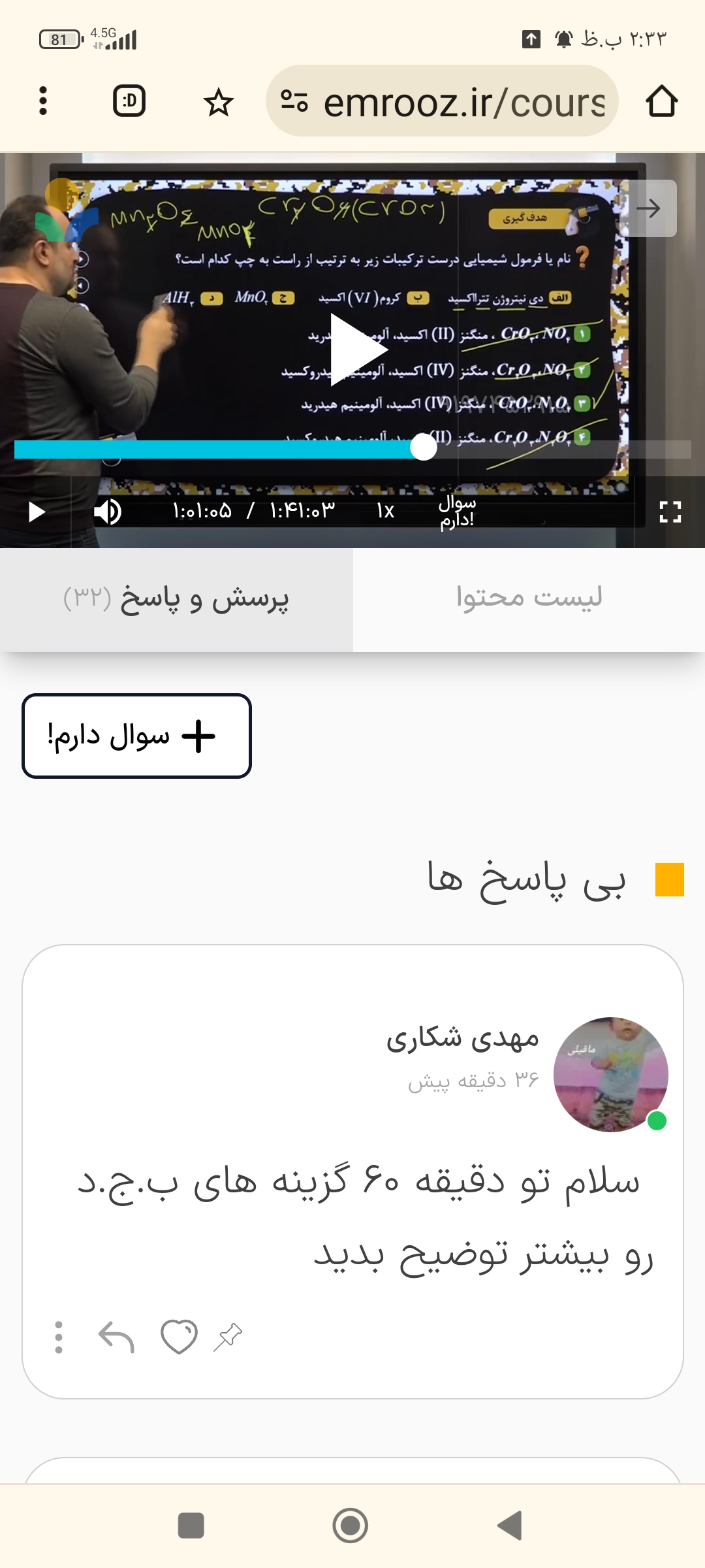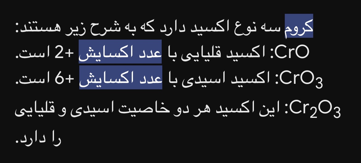 تو این سوال ردیف چهارم ستون سوم بالاترین عدد اکسایش کروم مگه 6+ نیست پس اکسیدش نباید میشد DO3؟
