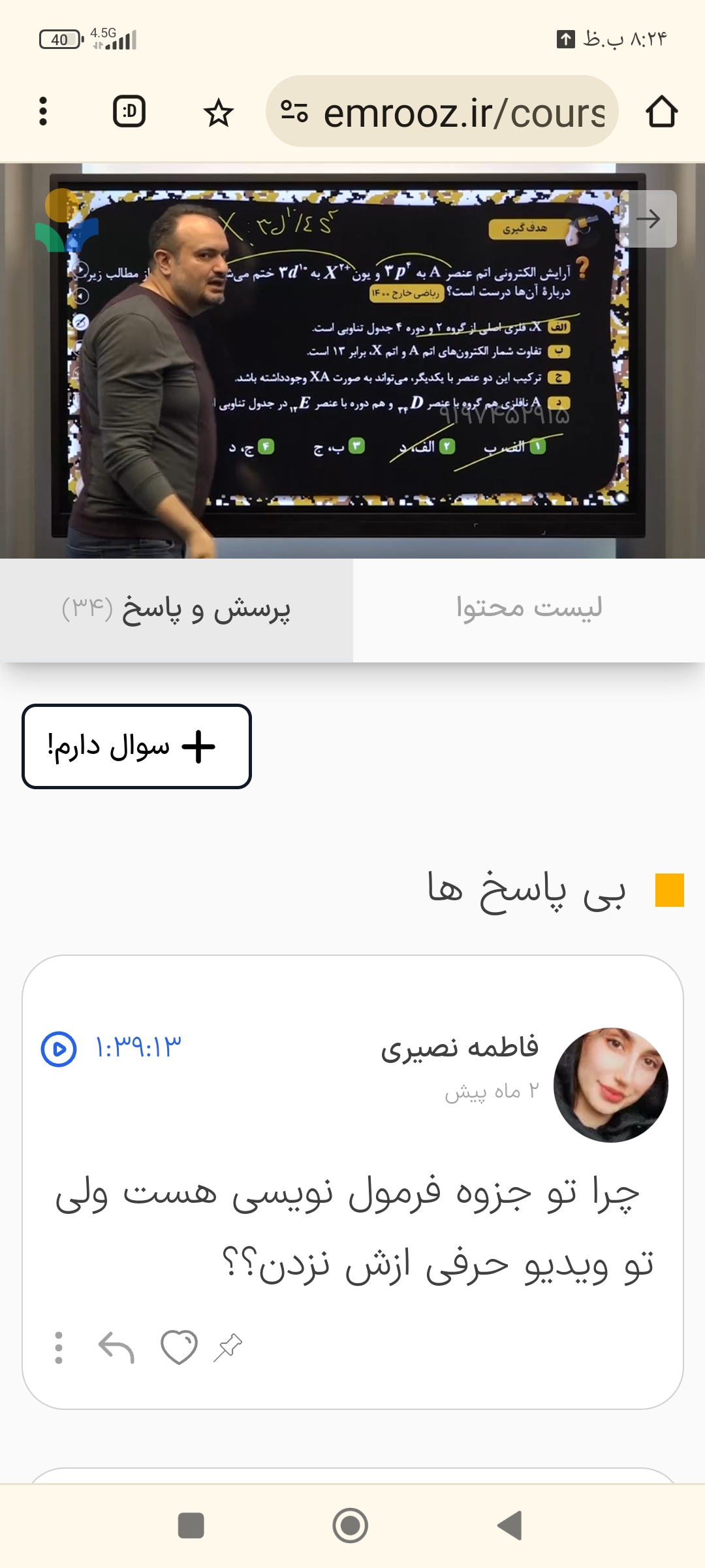@نرگس مهدوی خب یه چیزی! مگه حساب نمیکنیم؟ مثلا عدد اتمی فعلی رو اگه بعلاوه18 کنیم مگه تناوب بعدی نمیشه همون گروه؟ یه منها 18 کنیم.. خب من یه بار منها 18 کردم شد 32 یه بار بعلاوه 18 کردم شد 68.. محاسباتشو چیکار کنیم؟