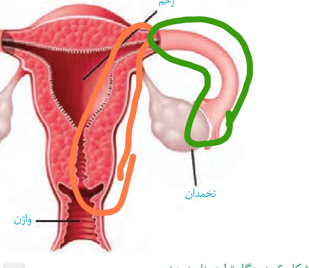 نه لوله رحمی از دیواره رحم مجزاست نارنجی : دیواره رحم سبز: دیواره لوله رحمی