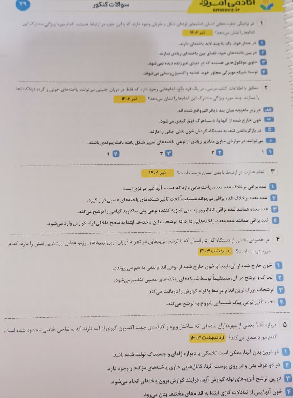 این صفحه وصفحه بعدی که میفرستم تستشون در جزوه هست ولی در ویدئوی تحلیلش نیست و استاد هیچ توضیحی درباره دستگاه گوارش ملخ و گاو و هیدر چیزی نگفتن