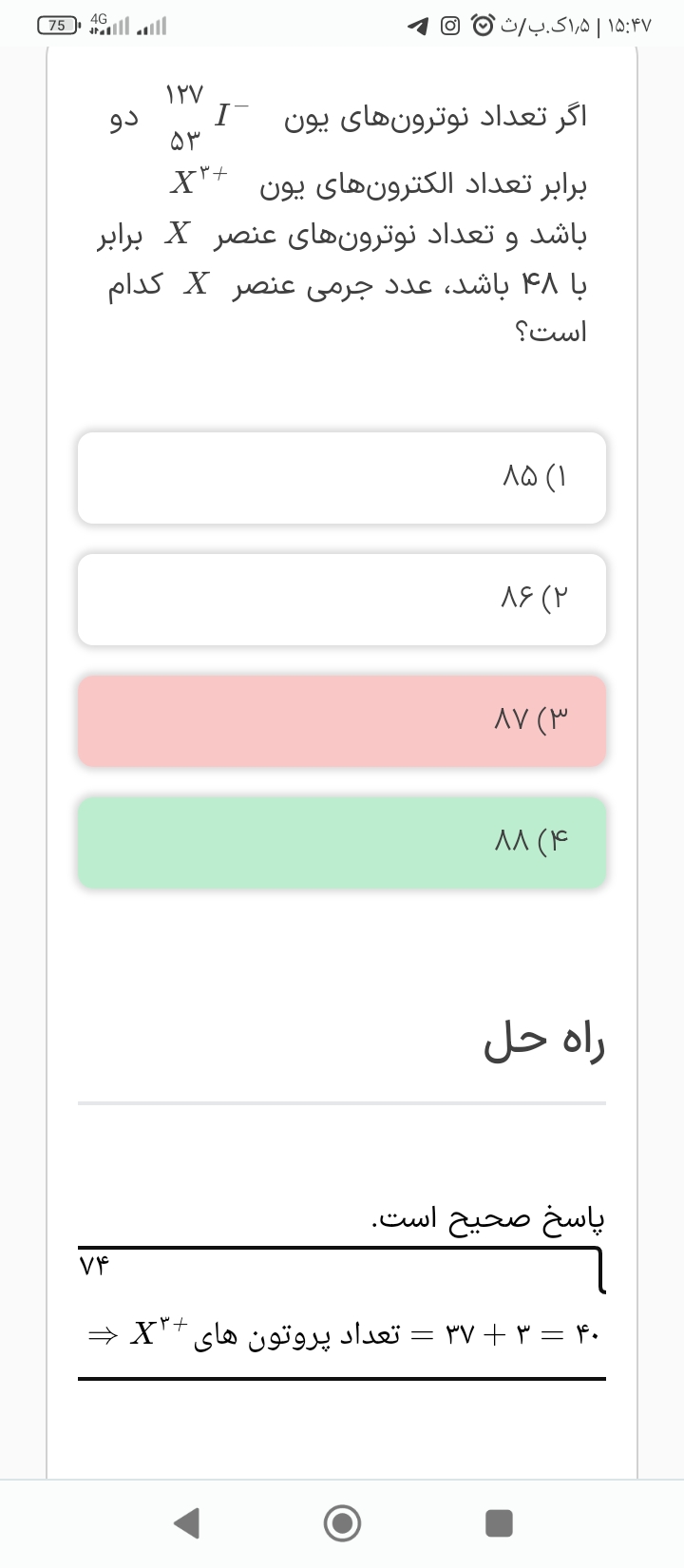 استاد میشه این سوالو توضیح بدید تو اون قسمت که هایلایت کردم از کجا می‌فهمیم که هر مول کریپتون ۷۲ مول ذره ی باردار داره؟