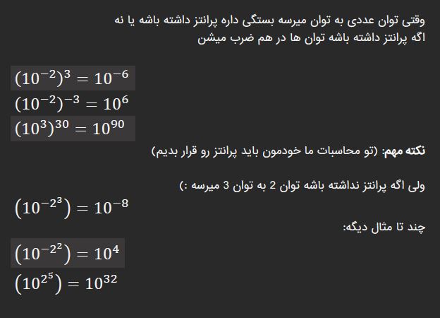 @ایمان جی اچ ولی اگه پرانتز نداشته باشه توان 2- (منفی 2) به توان 3 میرسه :) عذر می‌خوام از اشتباه تایپی که تو عکس بود