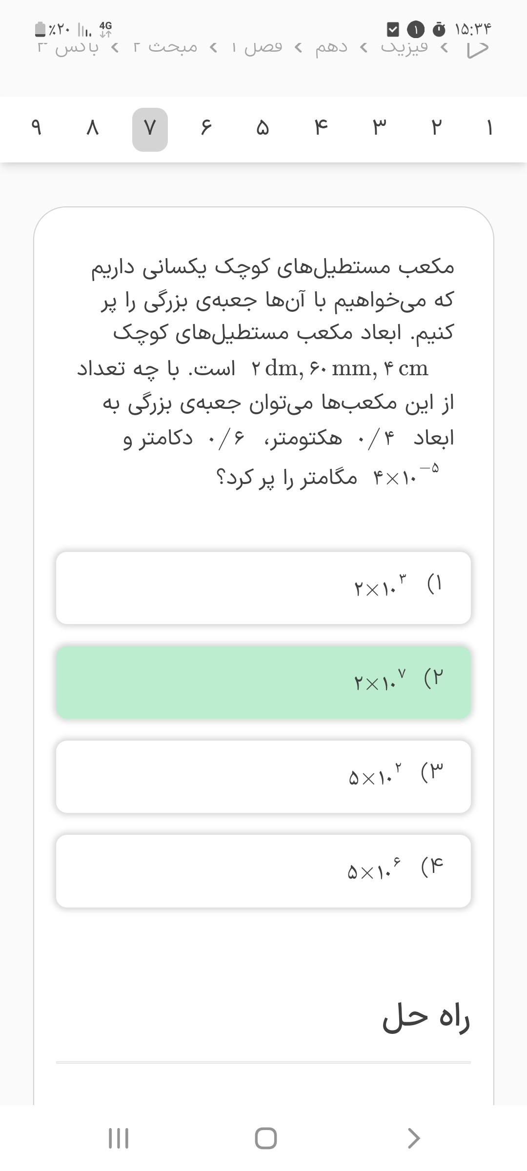 سلام ببخشيد من احساس ميكنم جواب گزينه 2 هستش به دليل اينكه هر جوري محاسبه ميكنم جوابش ميشه ده به توان 5