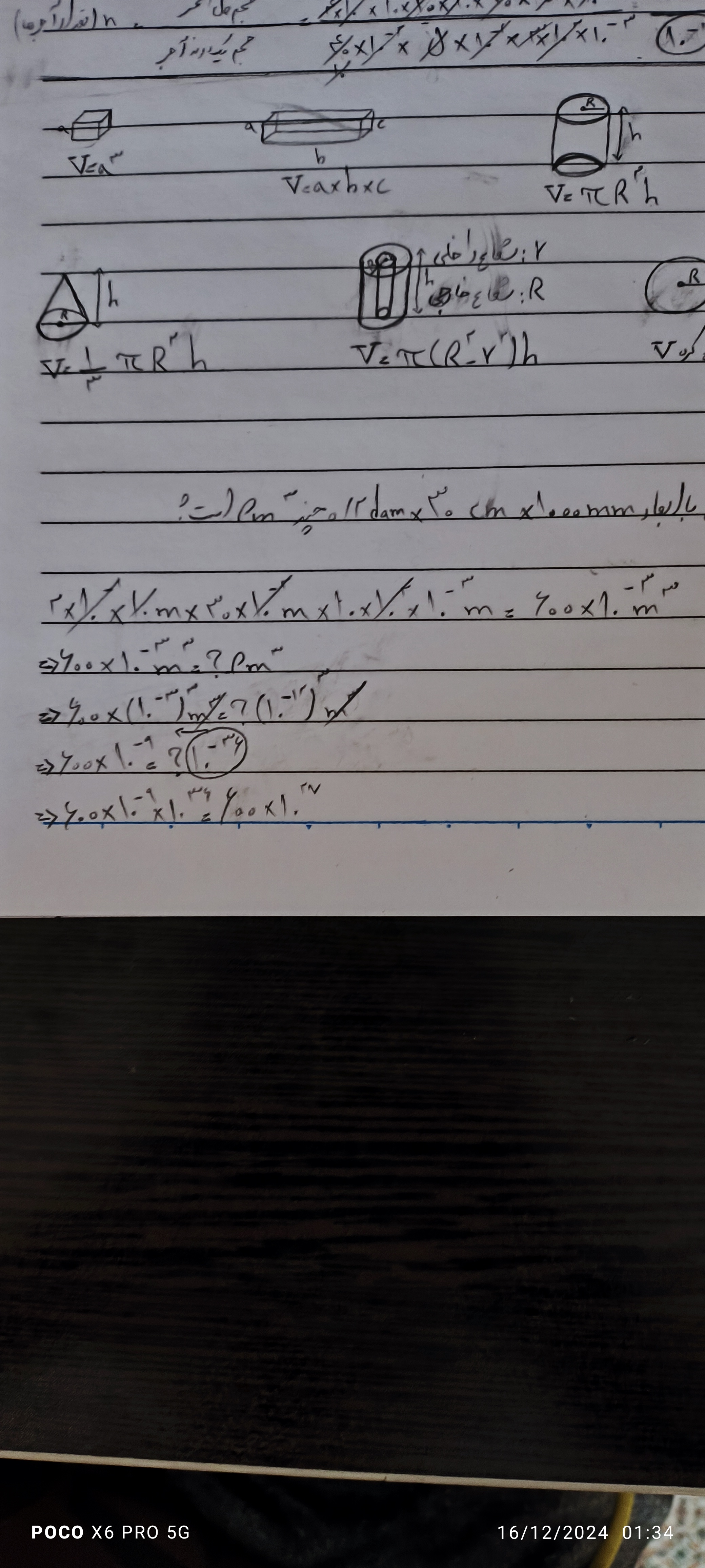 سلام این سوال متر مکعبه و بله میشه جوابتون کاملا دذست نیشه چون pm که توان سه داره تو مخرج منفیه میبریم صورت موبت میشه