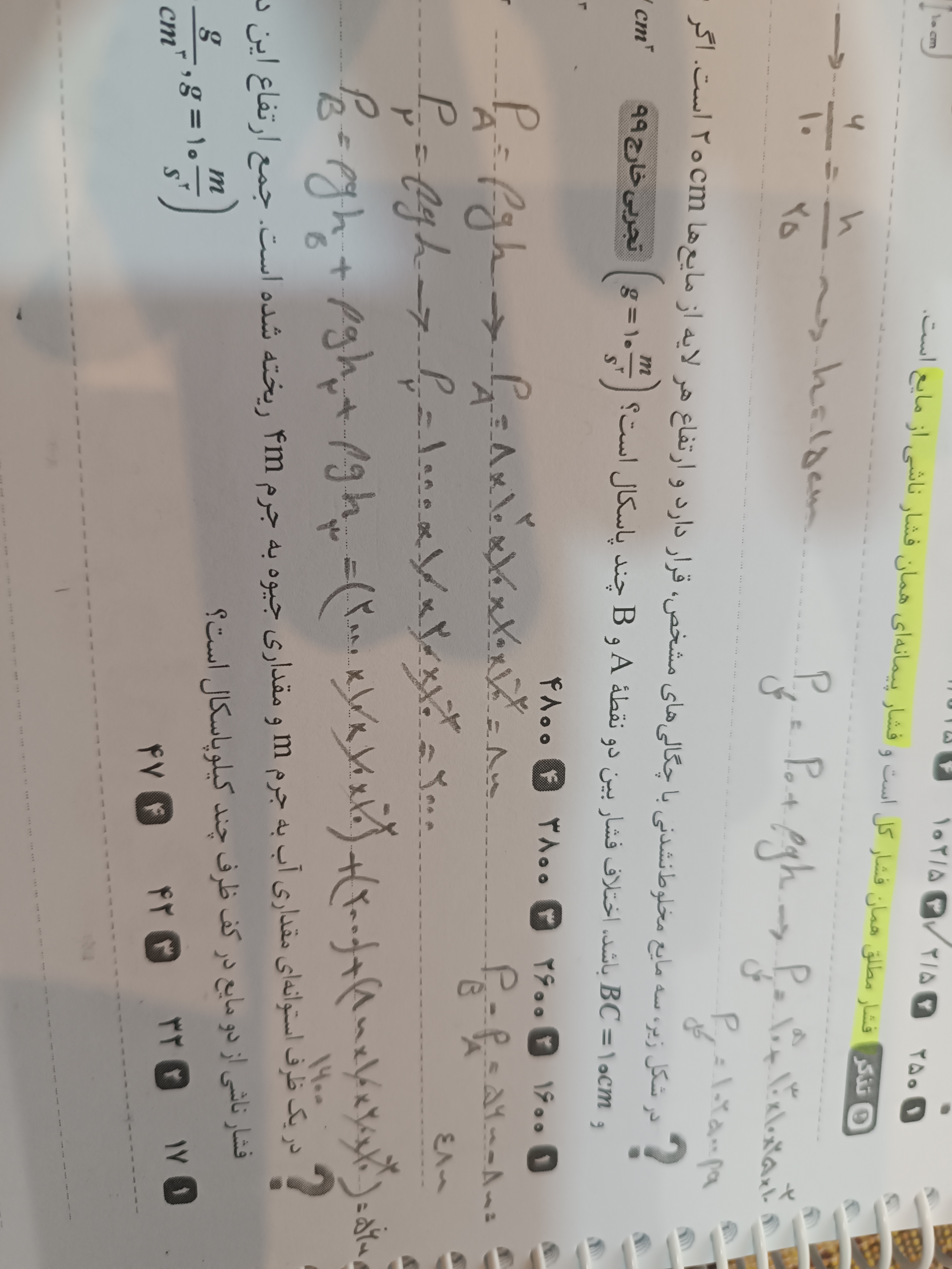 سرسوال گفته اختلاف فشار چنده یعنی 800 از 4800 کم شه چون خود نقطه آ فشارش 800 بود و که اختلافش با 4800 میشه 4000 هزار نگید اشتباهه لطفا