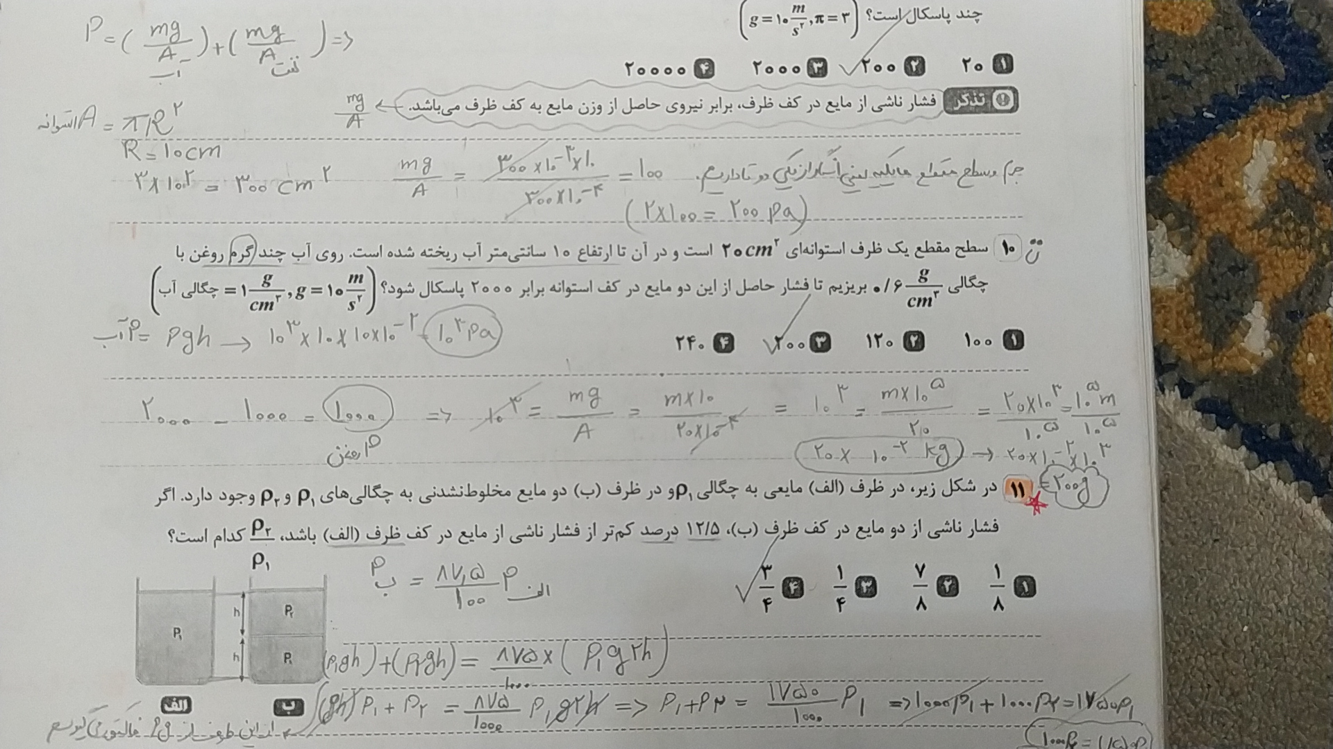 کاش در قسمت سوم حل این تست به جای فرول رو جی اچ و پیدا کردن ارتفاع روغن و .... مستقیما از فرمول P مساوی mg بر A استفاده میکردن