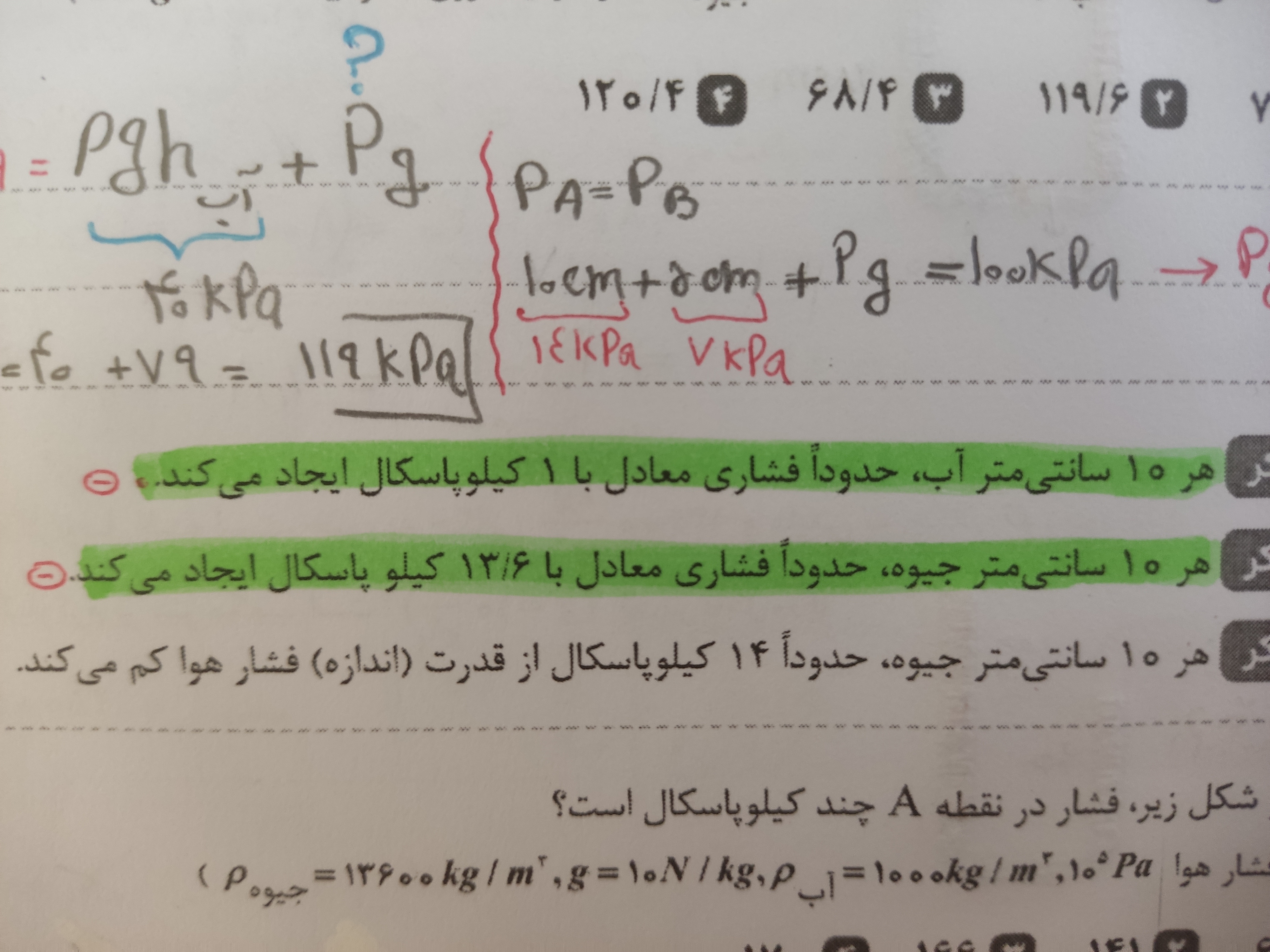 @سید محمد مبین حسینی بطور کلی در هر سوالی که با آب یا جیوه سر و کار داشته باشید و چگالی جیوه ۱۳/۶ باشه و چگالی آب هم ۱ باشه،این دو تا نکته صدق میکنه همیشه(مهمه که چگالی که سوال برای آب و میوه میده همین اعداد باشه) اگرم سوالی رو استاد با این روش ها حل نکردن،خودتون میتونید امتحانش کنید اگر جایی به مشکل خوردید من کمک میکنم
