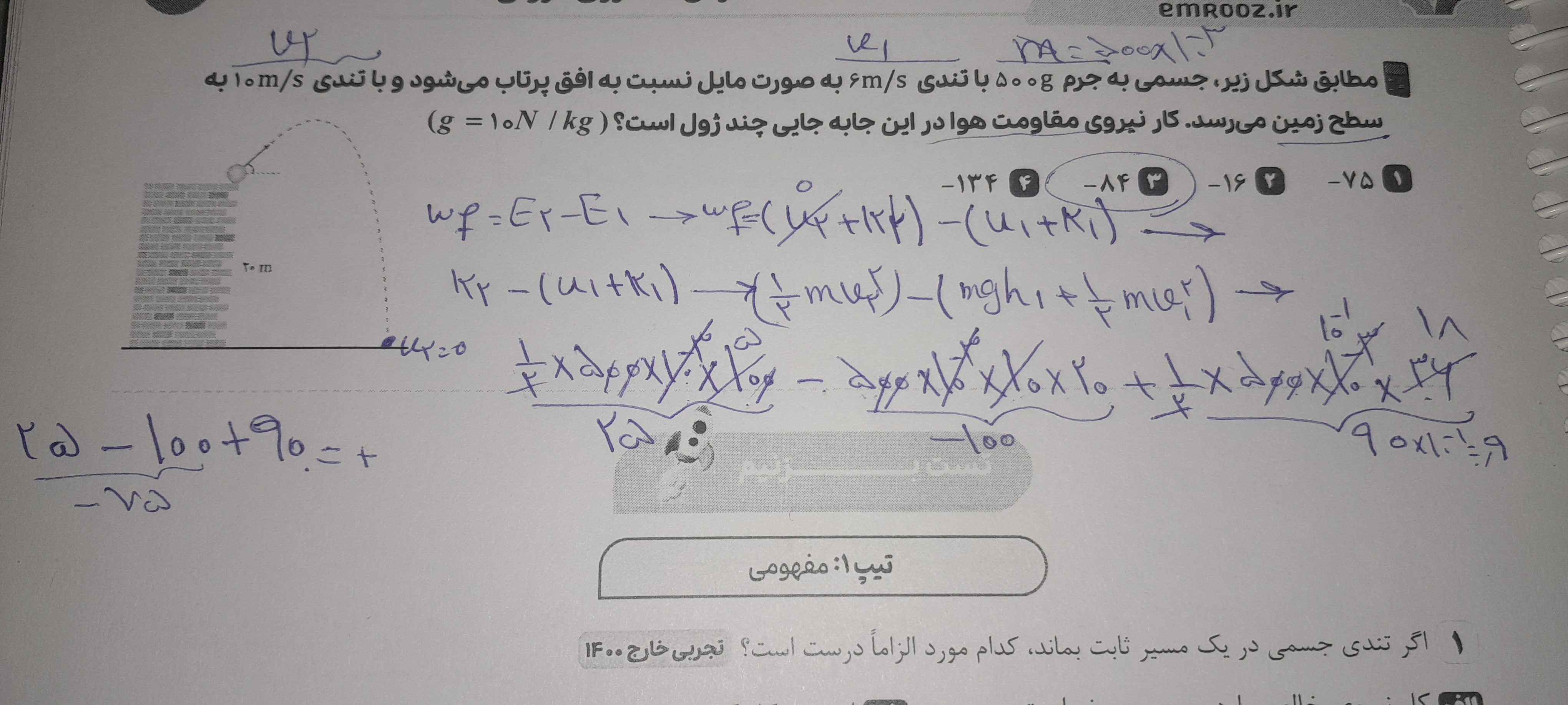 سلام میشه بگید کجا رو اشتباه کردم من هرچی حساب میکنم طبق پاسخ ۸۴- بدست نمیاد میشه راهنمایی کنید ❤️