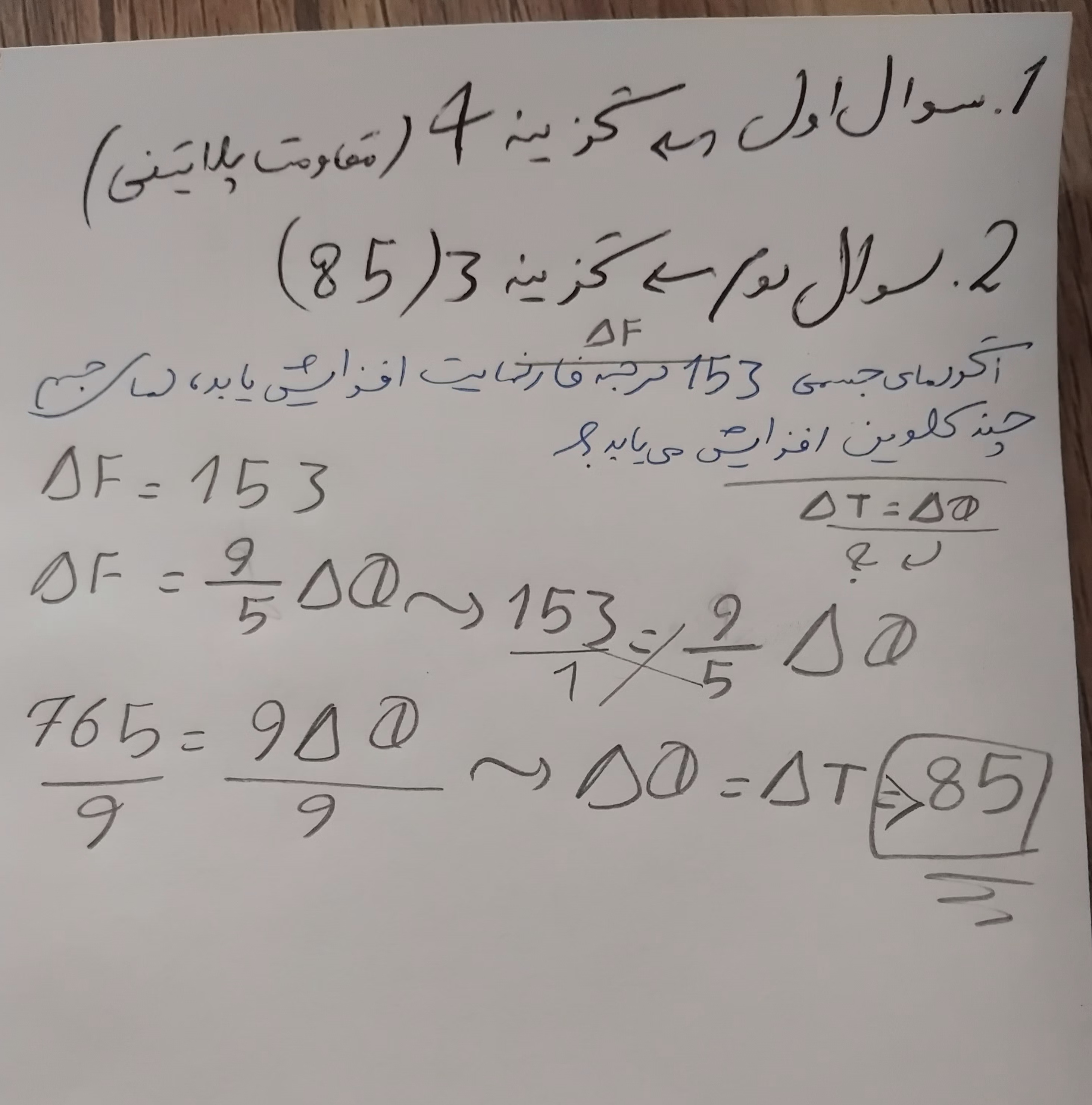 ۱. گزینه چهار مقاومت پلاتینی ۲.گزینه سوم ۸۵