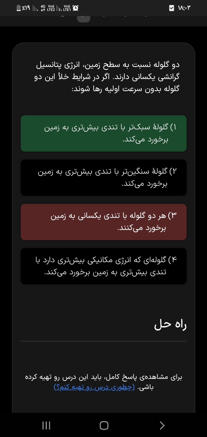 سلام. U1=U2 هست پس میای: mgh هردو رو برابر میزاری حالا برای اینکه تساوی درست در بیاد جسمی که جرمش کمتره باید در ارتفاع بالاتری قرار داشته باشه پس با تندی بیشتری به زمین برخورد میکنه.