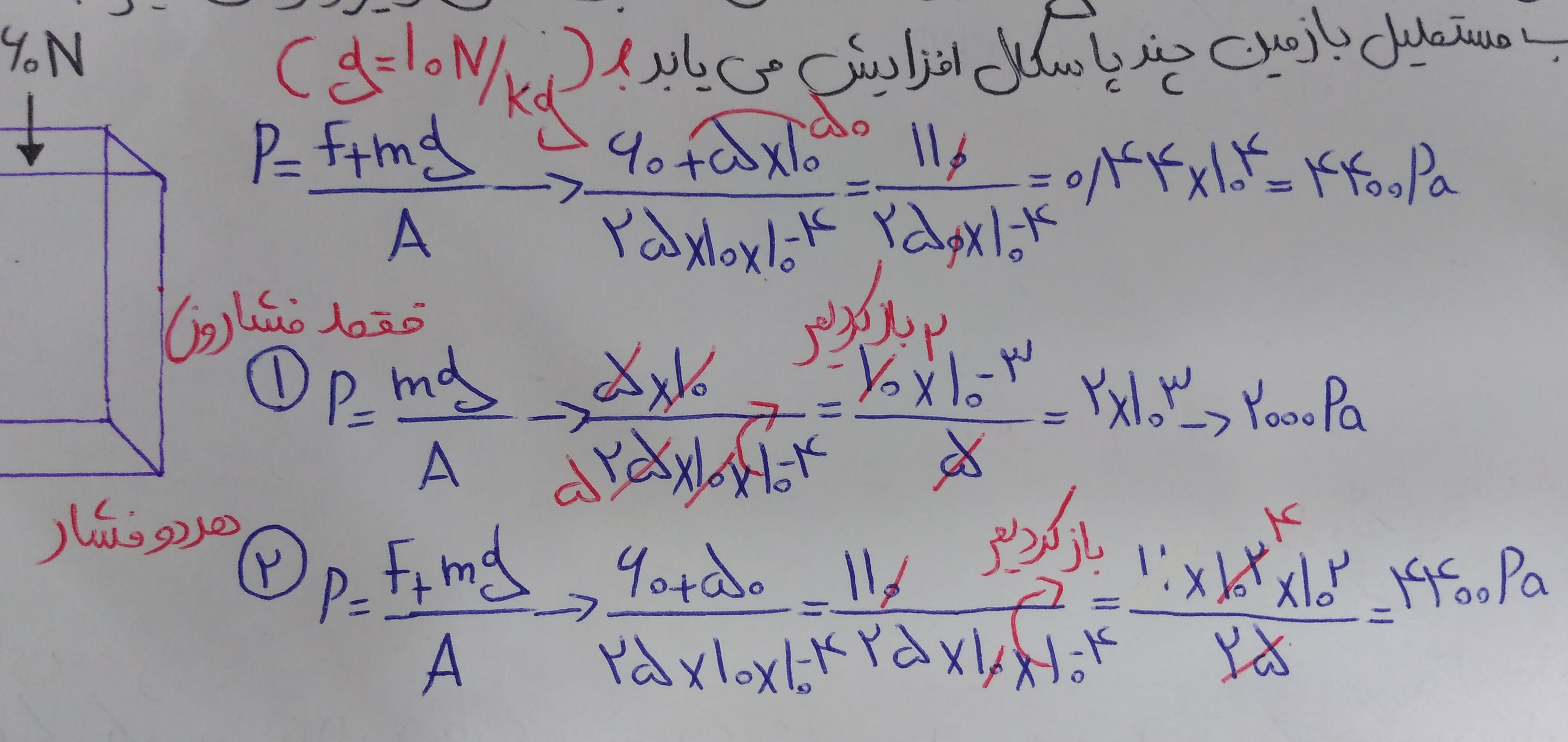سلام . به نظر من اصلا لازم نبود فشار مکعب خالی رو حساب کنیم . اگر همون فشار نیرو 6 نیوتون رو که اضافی هستش فقط حساب کنیم ، میشه 2400 و تست حل میشه . نظر بقبه دوستان چیه ؟!