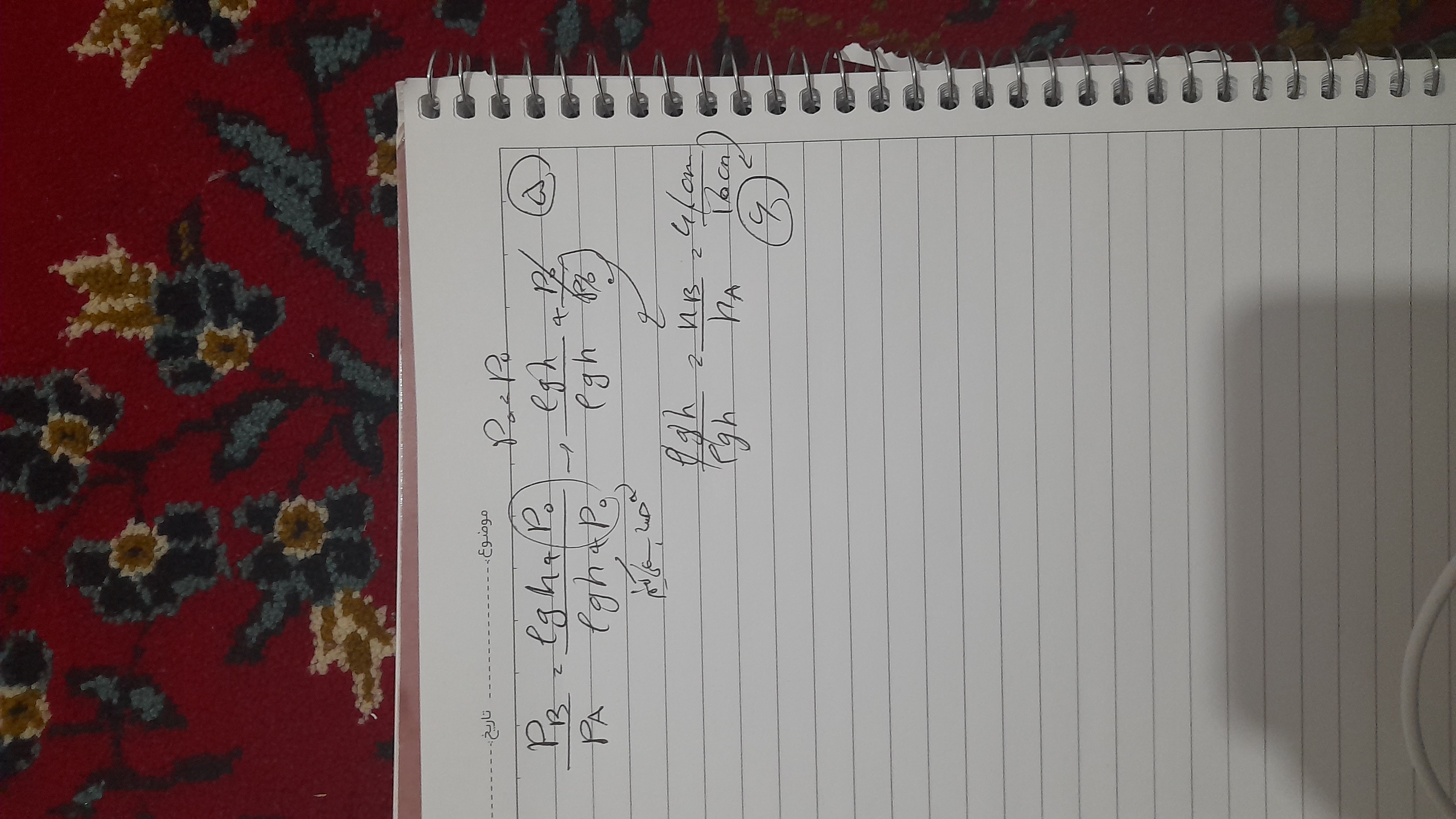 این سوال رو نمیشه به جای نوشتن نسبت pB/pA بگیم چون فشار B برابر است با فشار A به اضافه فشاری که اون پنجاه سانتی متر وارد میکنه اینجوری نویسیم pA+pgh/pA من اونجوری رفتم جواب اشتباه اومد