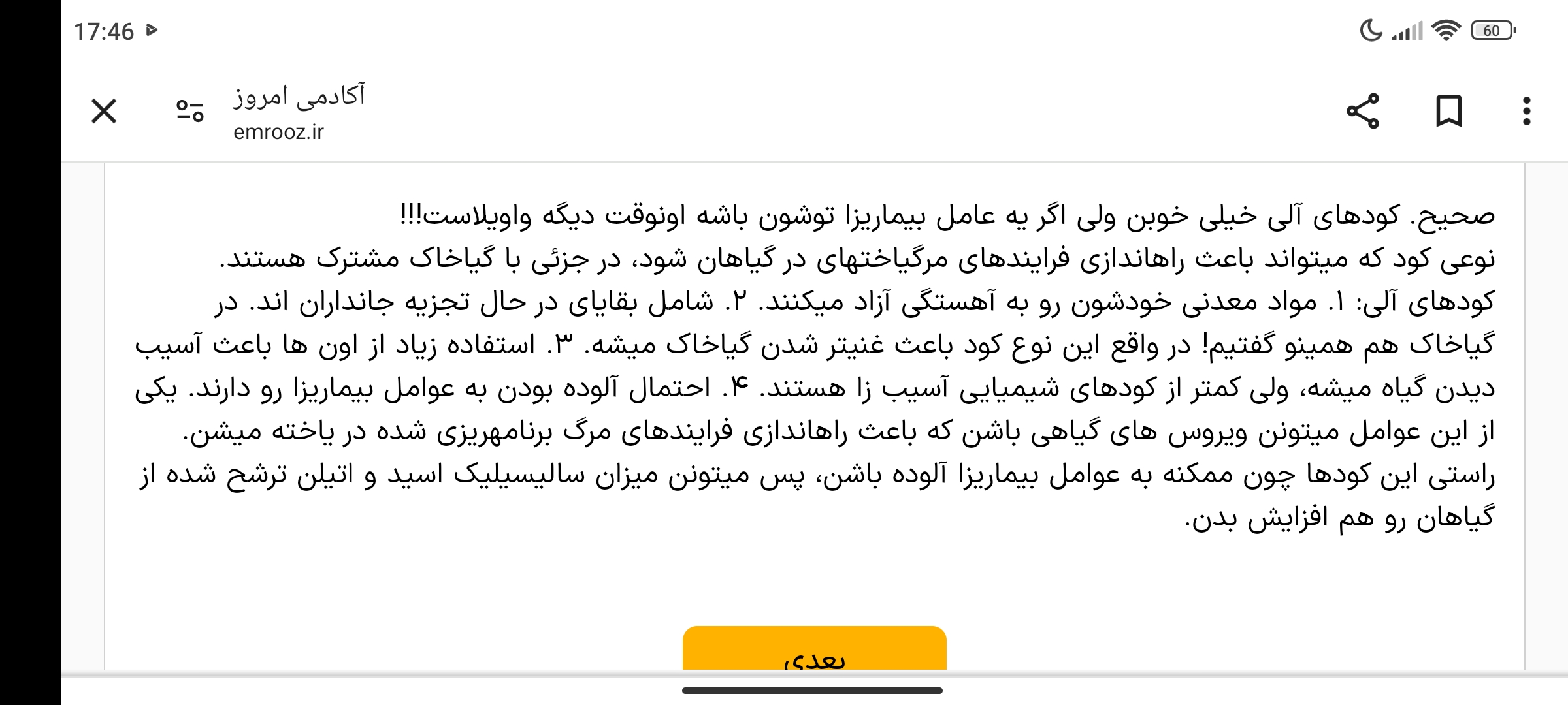 سلام سالیسیلیک و اتیلن درواقع محدود کننده های رشد هستن وقتی اسیبی به گیاه وارد میشه اون ها اجازه رشد به یاخته های الوده رو نمیدن و یجورایی باعث خودکشی میشن😂