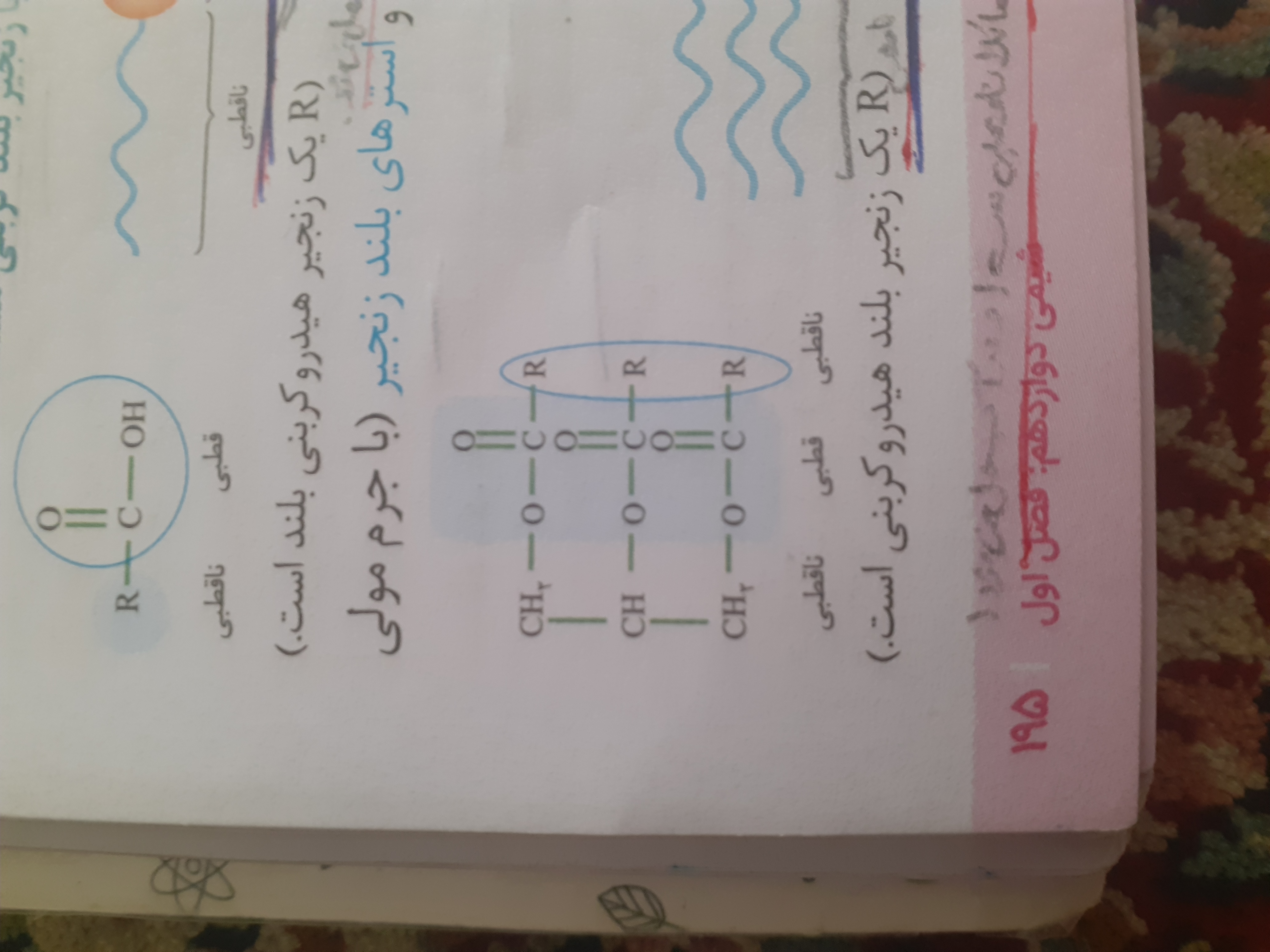 @زینب مقدم و اینکه خانم مقدم ببخشید در مدل شکل فضایی مولکول ها برای مولکول استر ۳ عاملی خوب اسید های چرب که به صورت دُم مانند دیده میشوند اون قسمت دایره ای که در سر هست درواقع چی هست؟ اگه اون قسمت دایره ای رو بخواین قطبی در نظر بگیریم پس تکلیف اون R سمت چپ چی میشه؟ مادوتا R داشتیم یکی که مربوط به اسید چرب بود اون یکی R مربوط میشد به بقایای گلیسرول اون بقایا کجاست؟ ایا باید اون دایره مجزا رو قطبی در نظر گرفت؟ یا قطبی و ناقطبی؟ امیدوارم منظورمو رسونده باشم اگرم نفهنیدید لطفا اطلاع بدید به شیوه عمیق تر منظورمو بگم