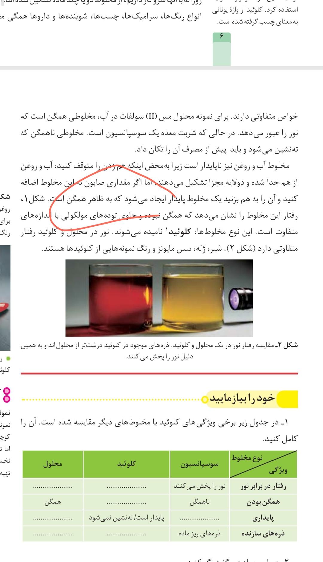 سلام ببخشید در مورد سوال 6 تمرین بخش ب صابون باعث انحلال چربی در اب میشه ؟ لفظ انحلال برای کلوئید درسته؟